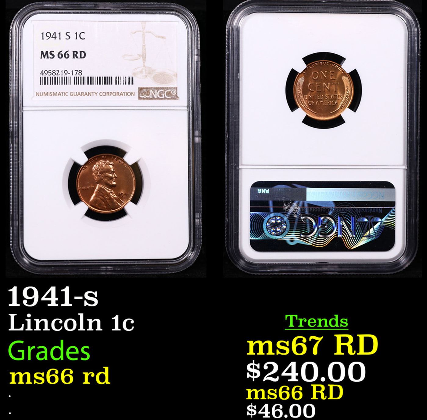 NGC 1941-s Lincoln Cent 1c Graded ms66 rd By NGC