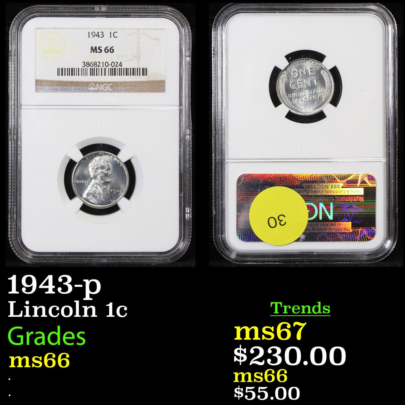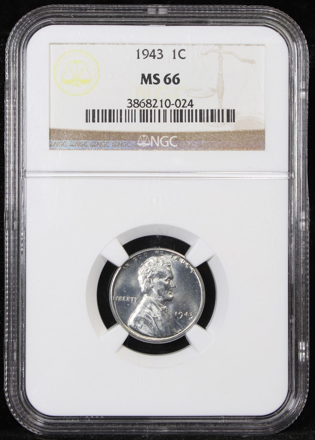 NGC 1943-p Lincoln Cent 1c Graded ms66 By NGC. One year type coin. The much heralded, "Steel" WWII cent. Great example of a favorite coin. The 1943-p Wartime issue Steel Cent.