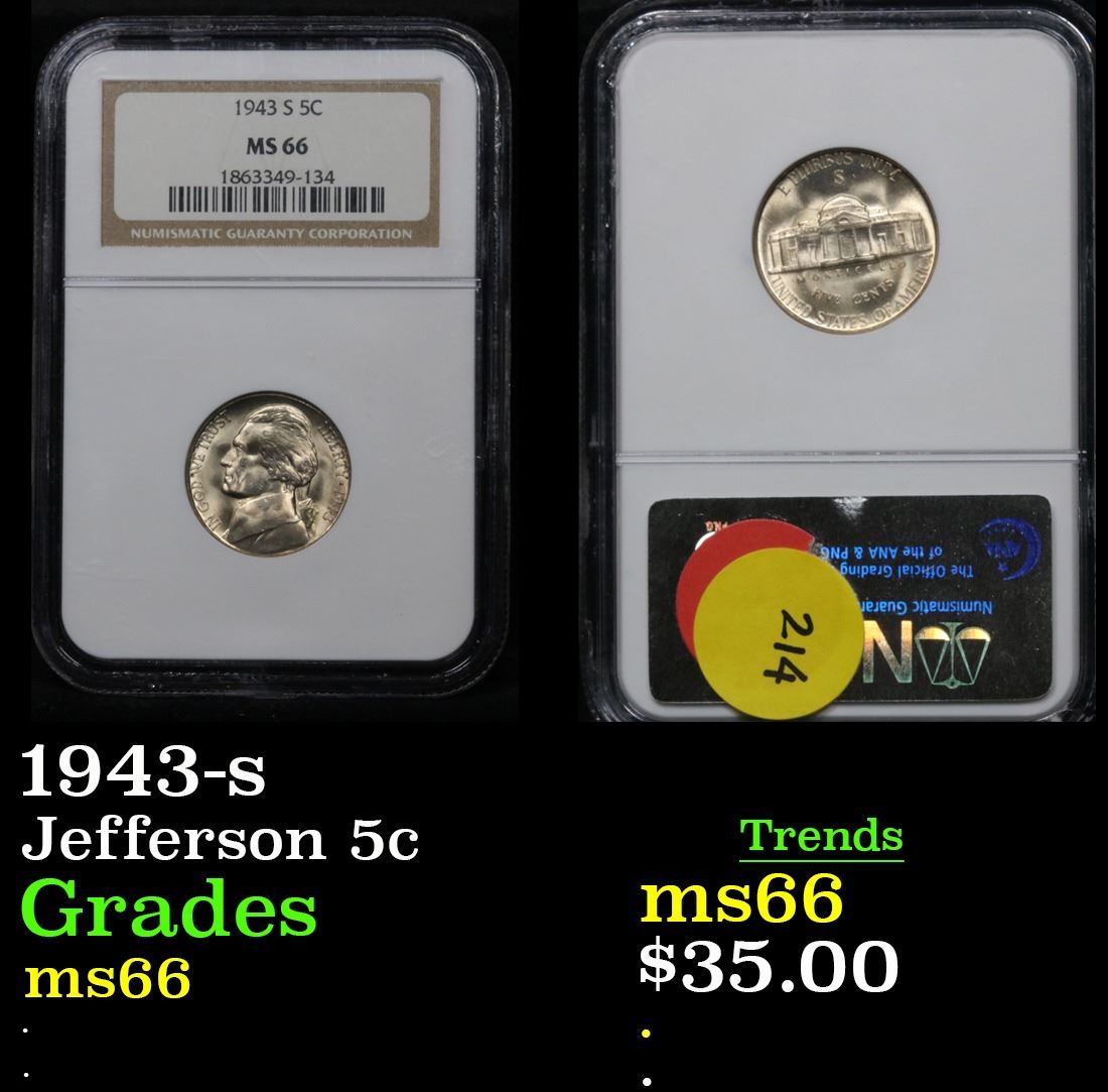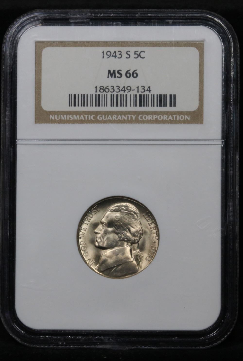 NGC 1943-s Jefferson Nickel 5c Graded GEM+ By NGC.