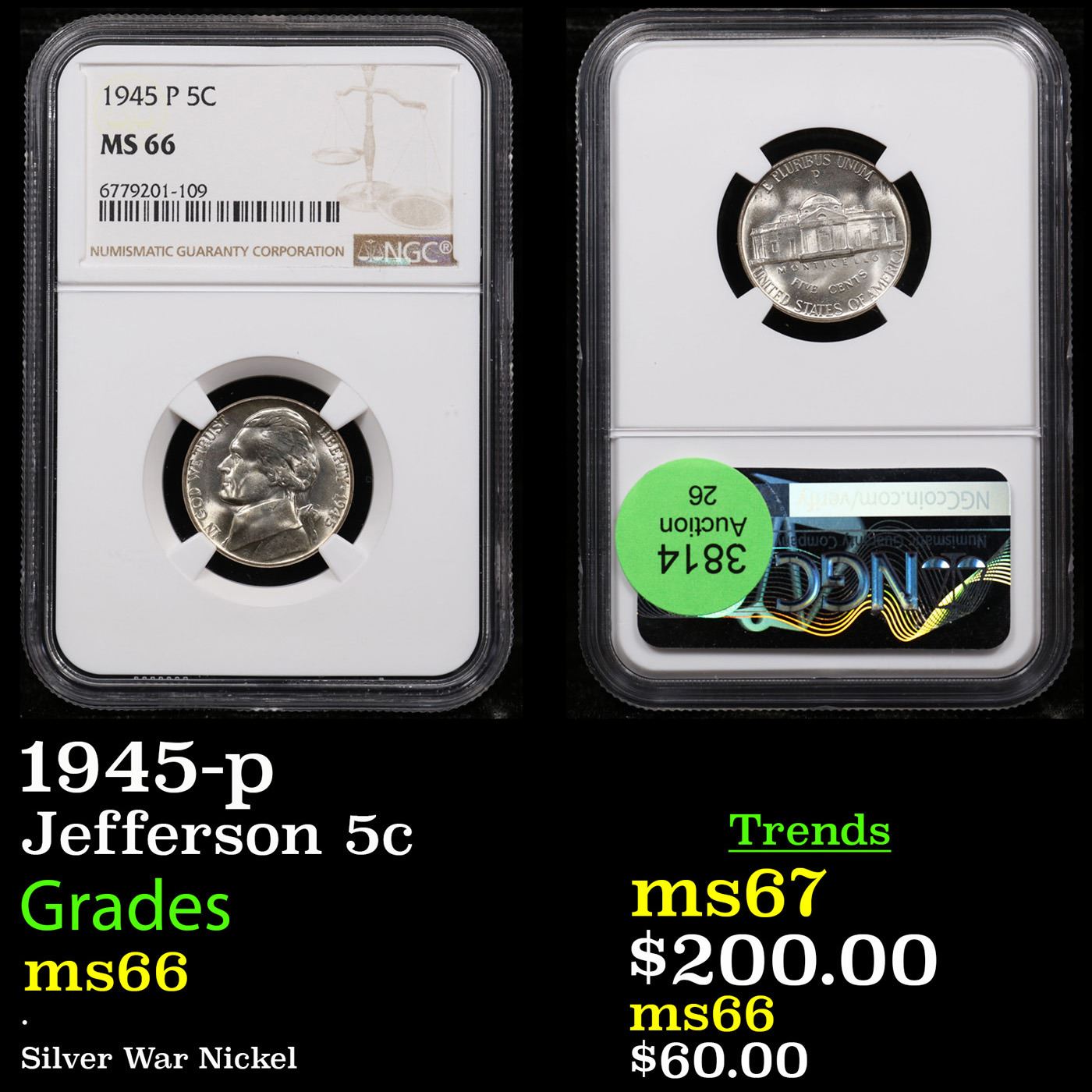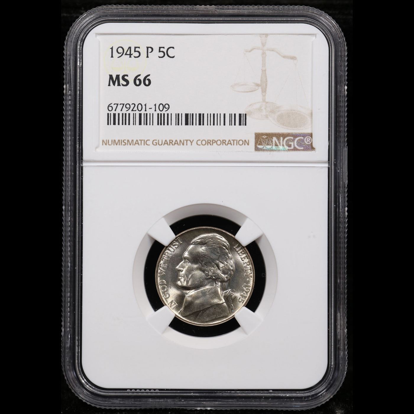NGC 1945-p Jefferson Nickel 5c Graded ms66 By NGC.