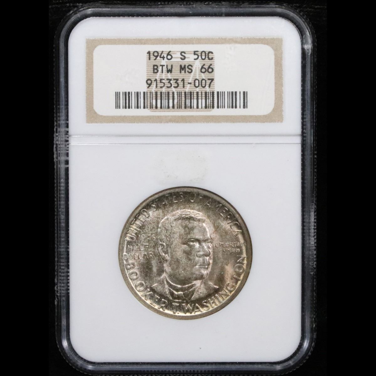 NGC 1946-s BTW . . Old Commem Half Dollar 50c Graded ms66 By NGC. When examining a Booker T. Washington commemorative look for wear on the high points, on the obverse that is Mr. Washington's right Cheek (from his perspective), and on the reverse the arches on the top building.