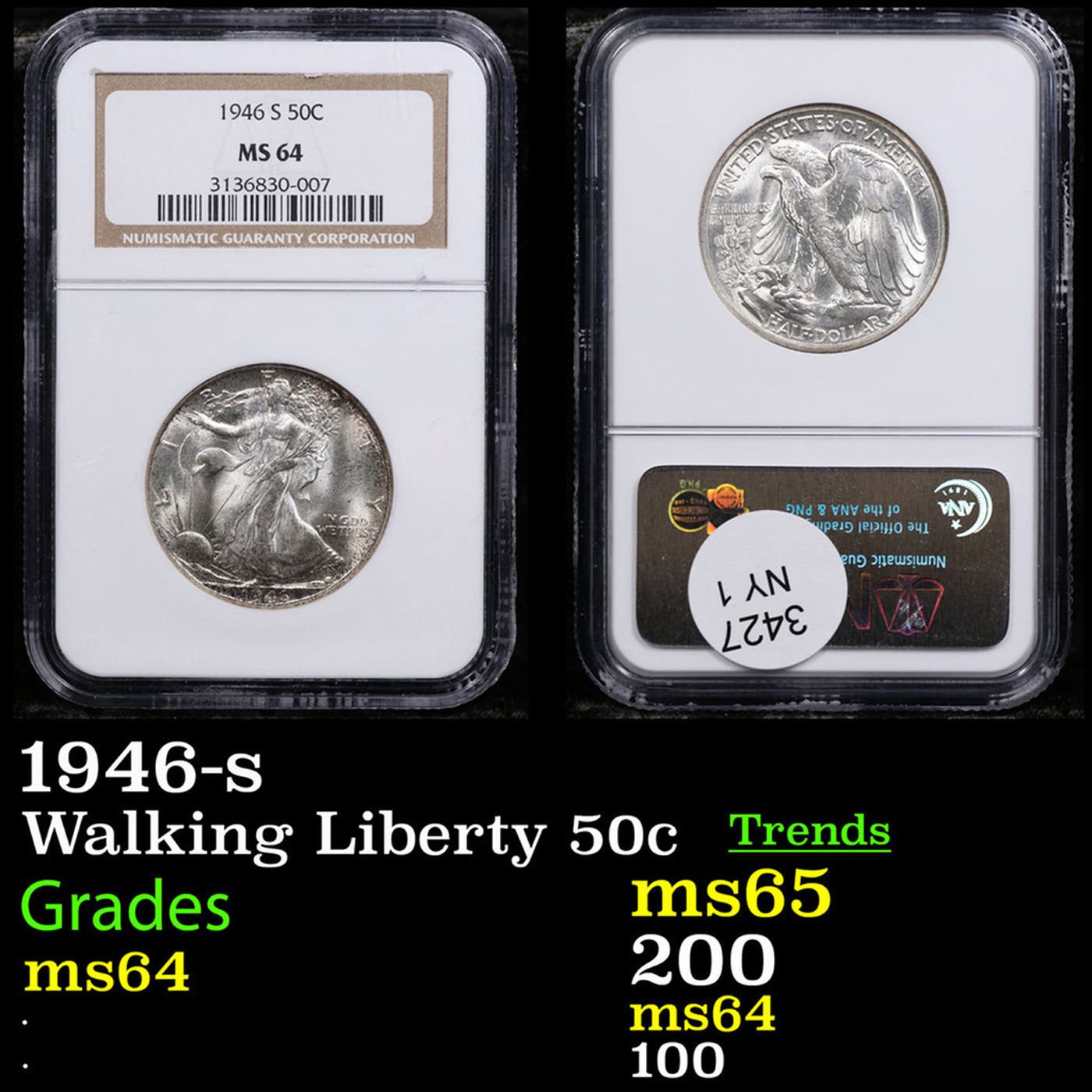 NGC 1946-s Walking Liberty Half Dollar 50c Graded ms64 By NGC.
