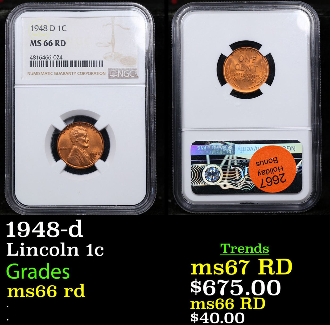 NGC 1948-d Lincoln Cent 1c Graded ms66 rd By NGC.