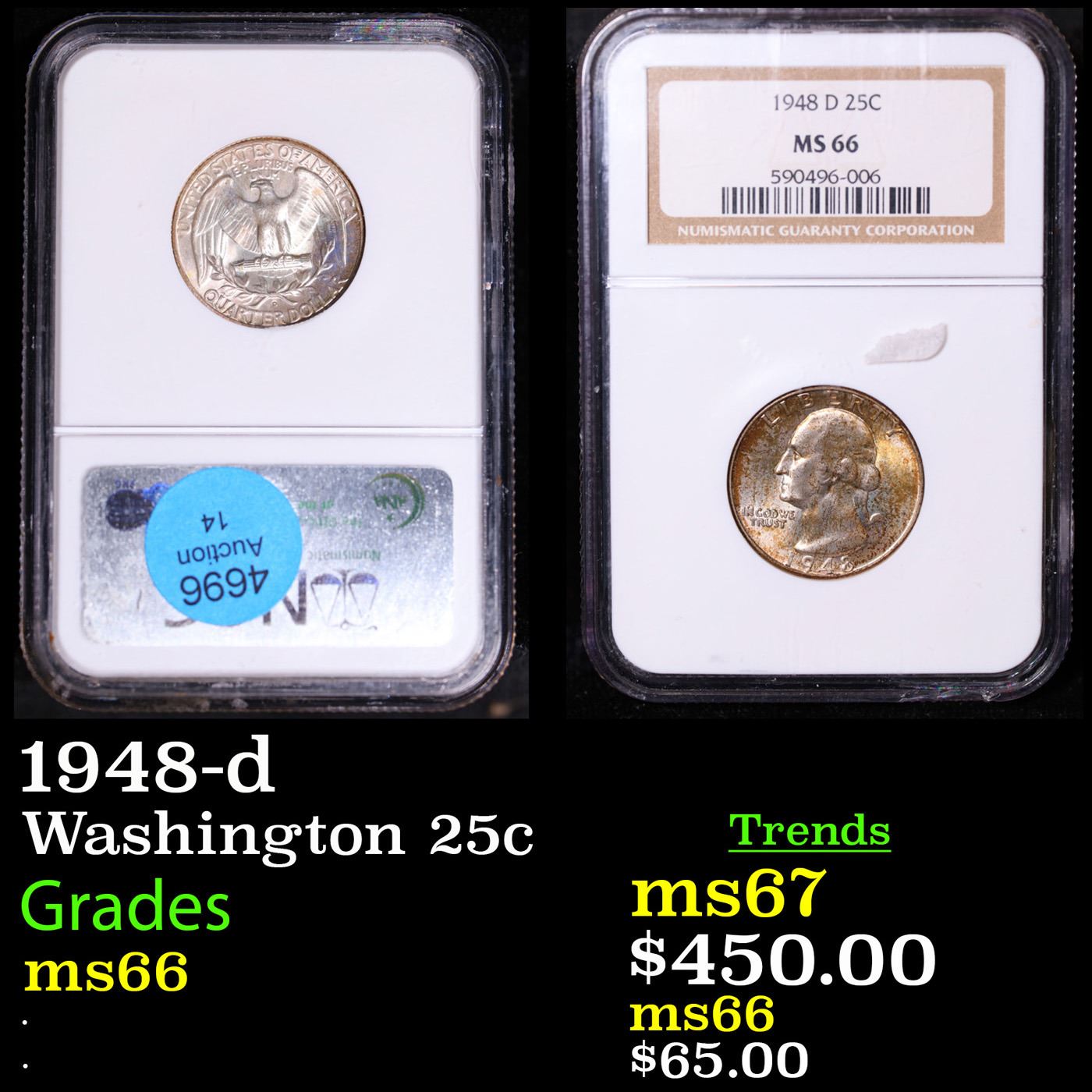 NGC 1948-d Washington Quarter 25c Graded ms66 By NGC.
