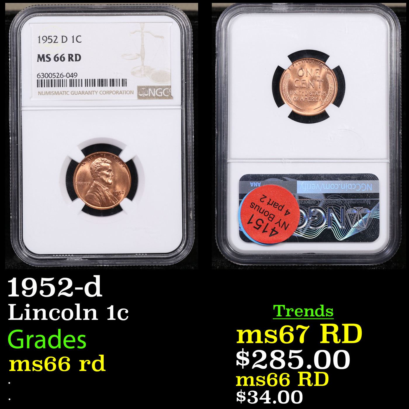 NGC 1952-d Lincoln Cent 1c Graded ms66 rd By NGC.