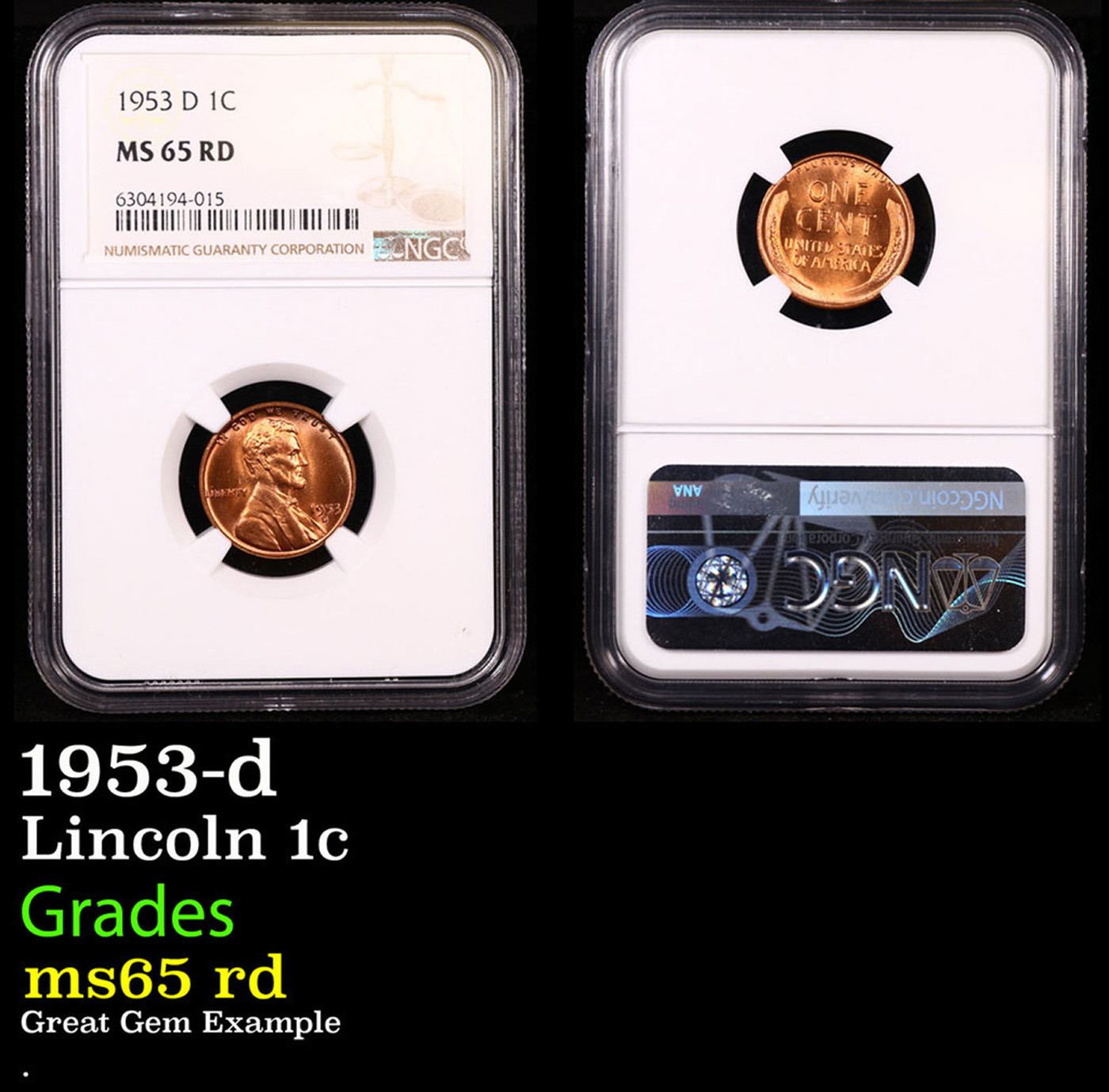 NGC 1953-d Lincoln Cent 1c Graded ms65 rd By NGC.