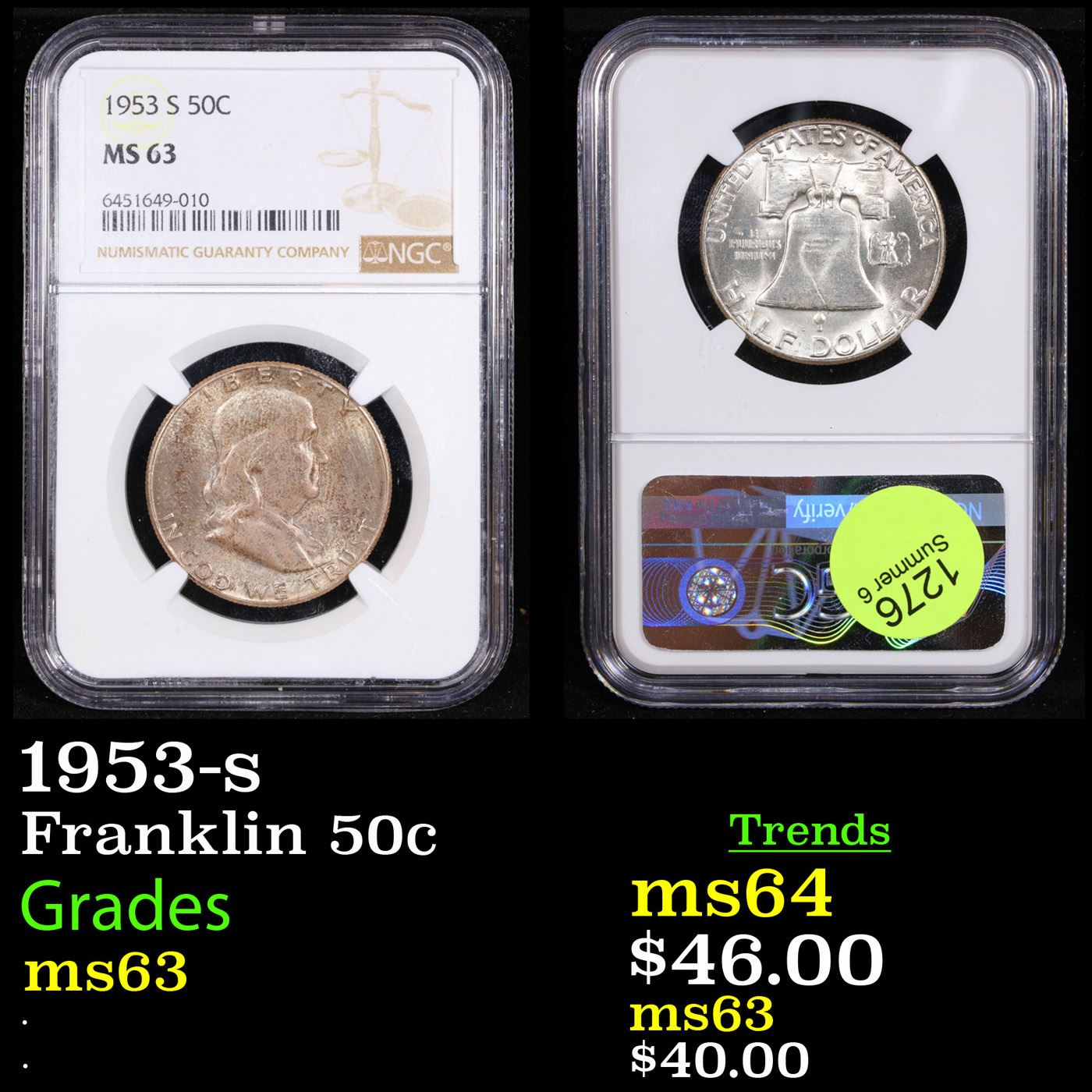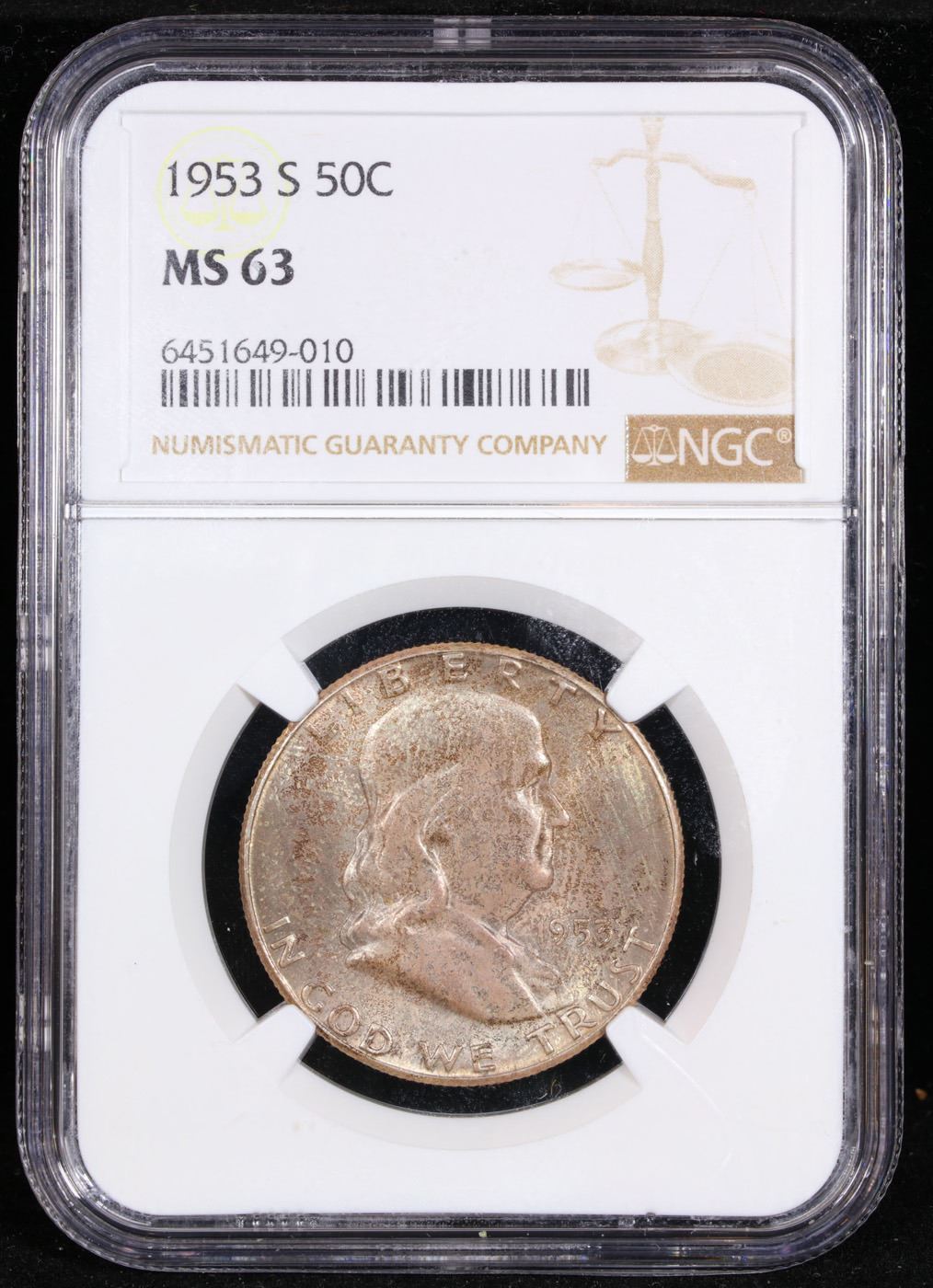 NGC 1953-s Franklin Half Dollar 50c Graded ms63 By NGC.