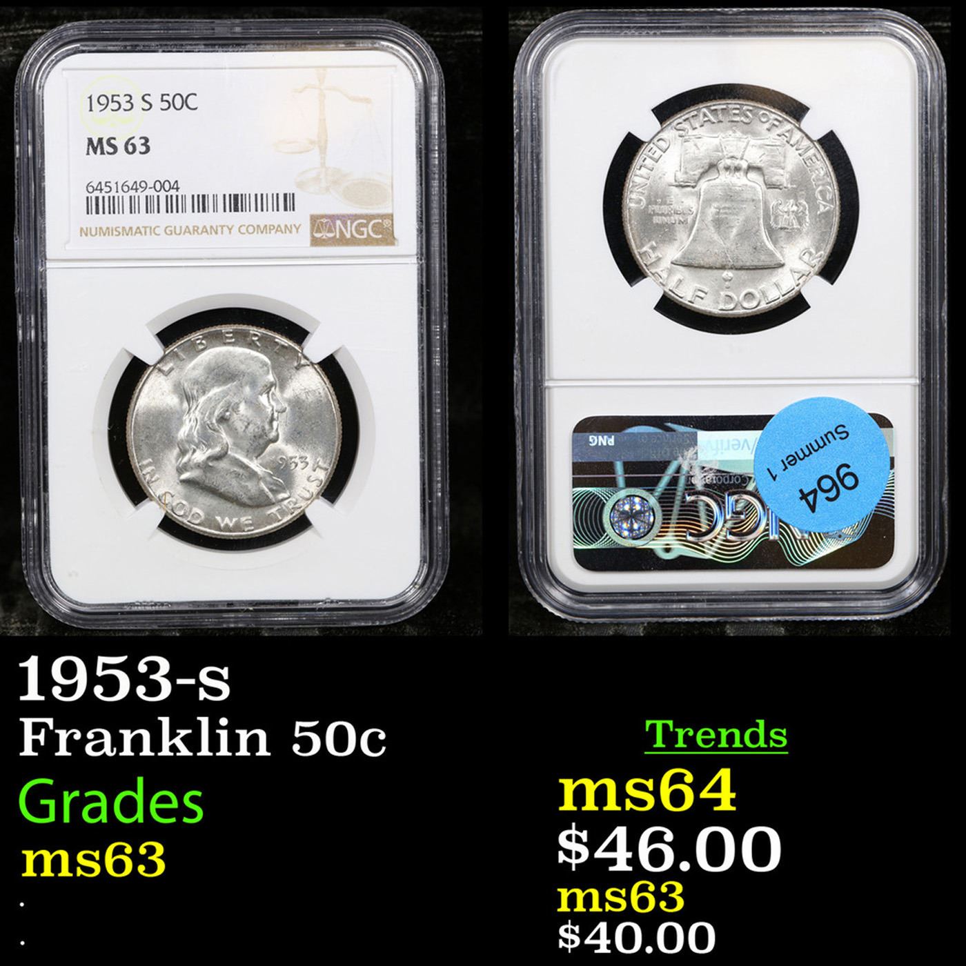 NGC 1953-s Franklin Half Dollar 50c Graded ms63 By NGC.