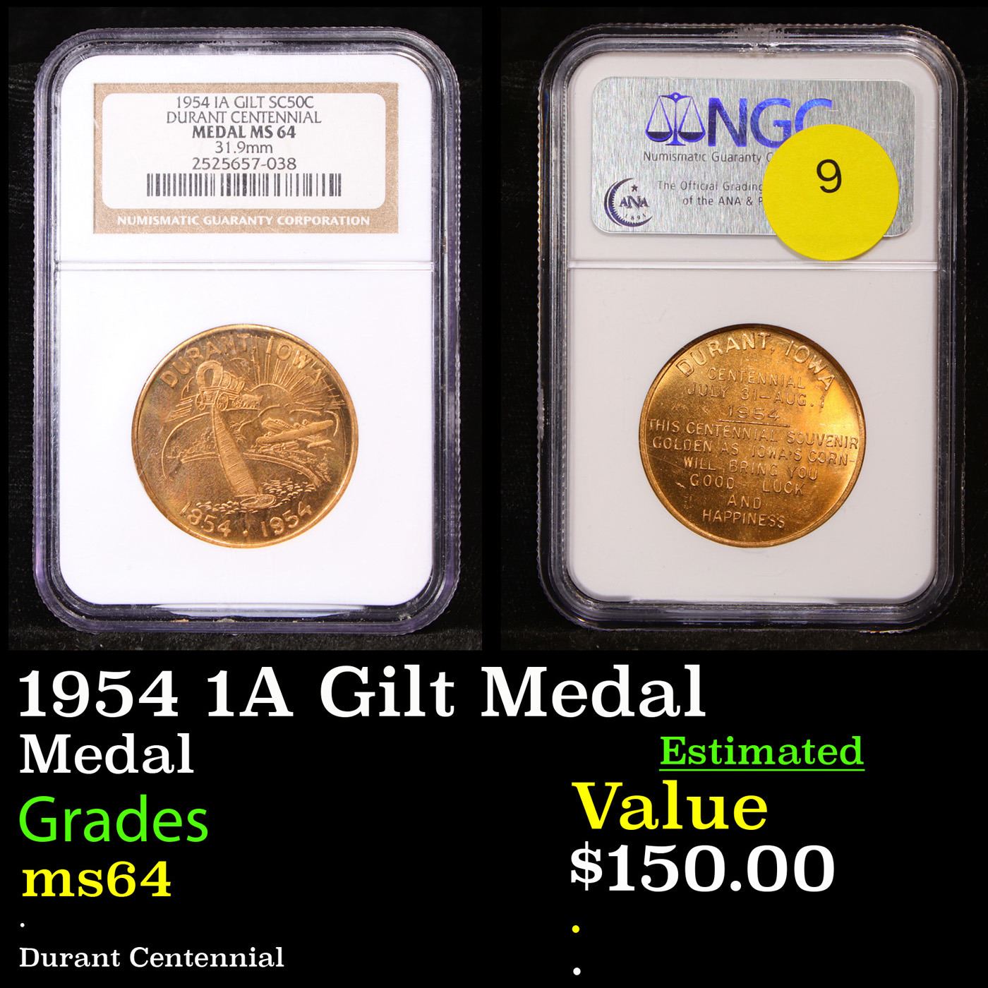 NGC 1954 1A Gilt Medal SC50C Graded ms64 By NGC.