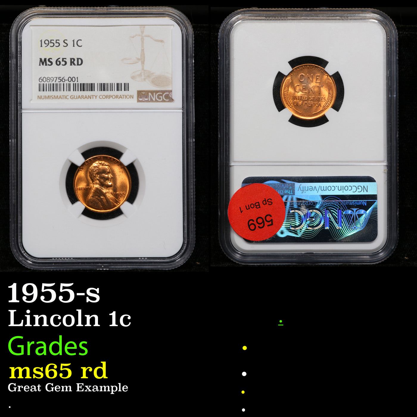 NGC 1955-s Lincoln Cent 1c Graded ms65 rd By NGC.