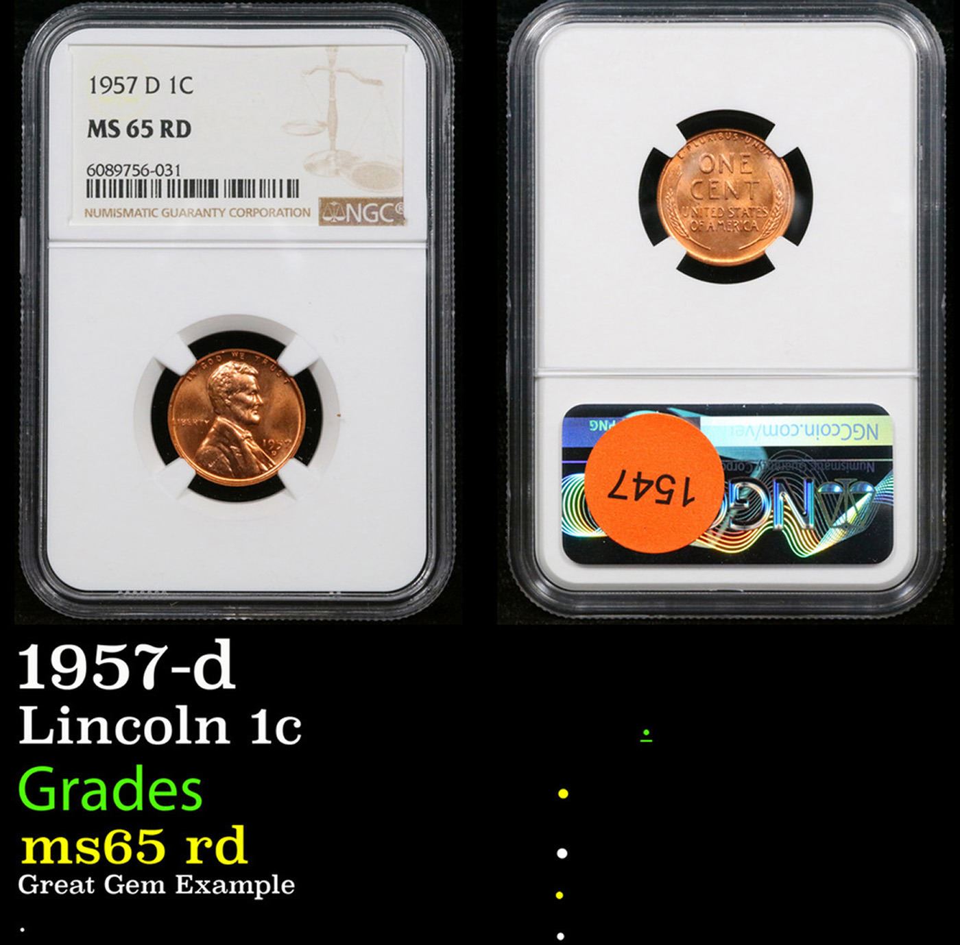 NGC 1957-d Lincoln Cent 1c Graded ms65 rd By NGC.
