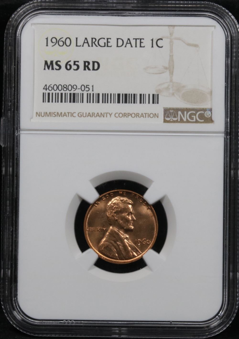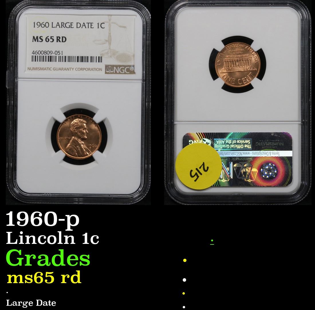 NGC 1960-p Large Date Lincoln Cent 1c Graded GEM RD By NGC.