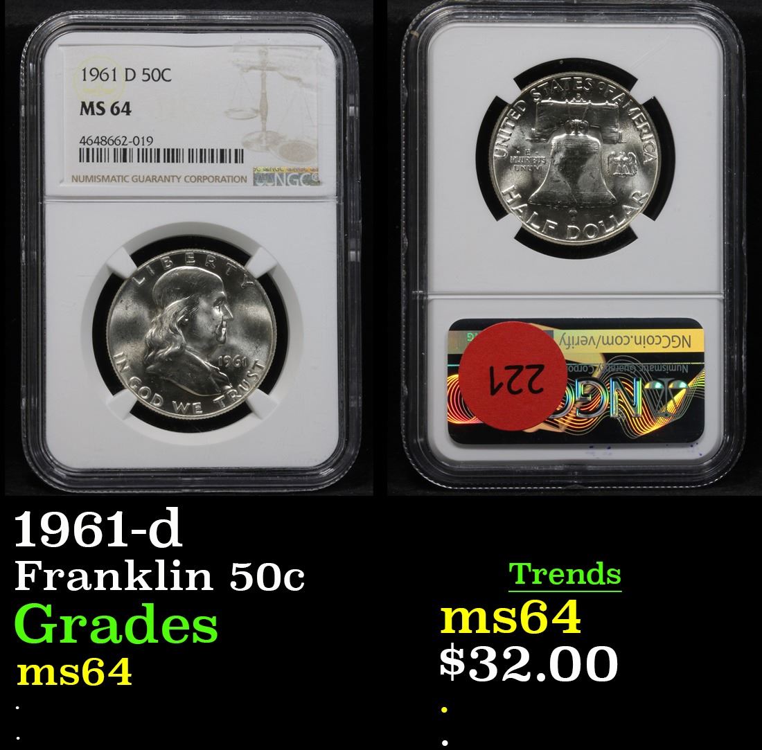 NGC 1961-d . . Franklin Half Dollar 50c Graded ms64 By NGC.