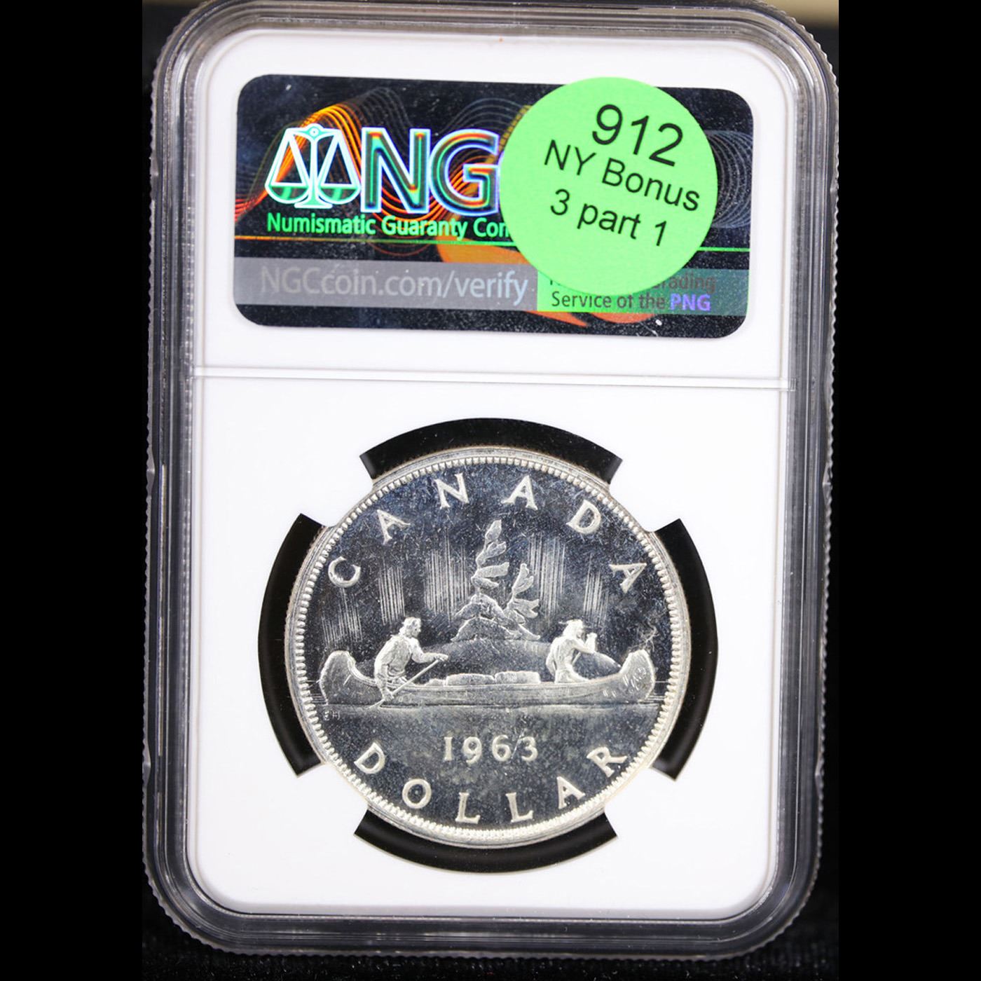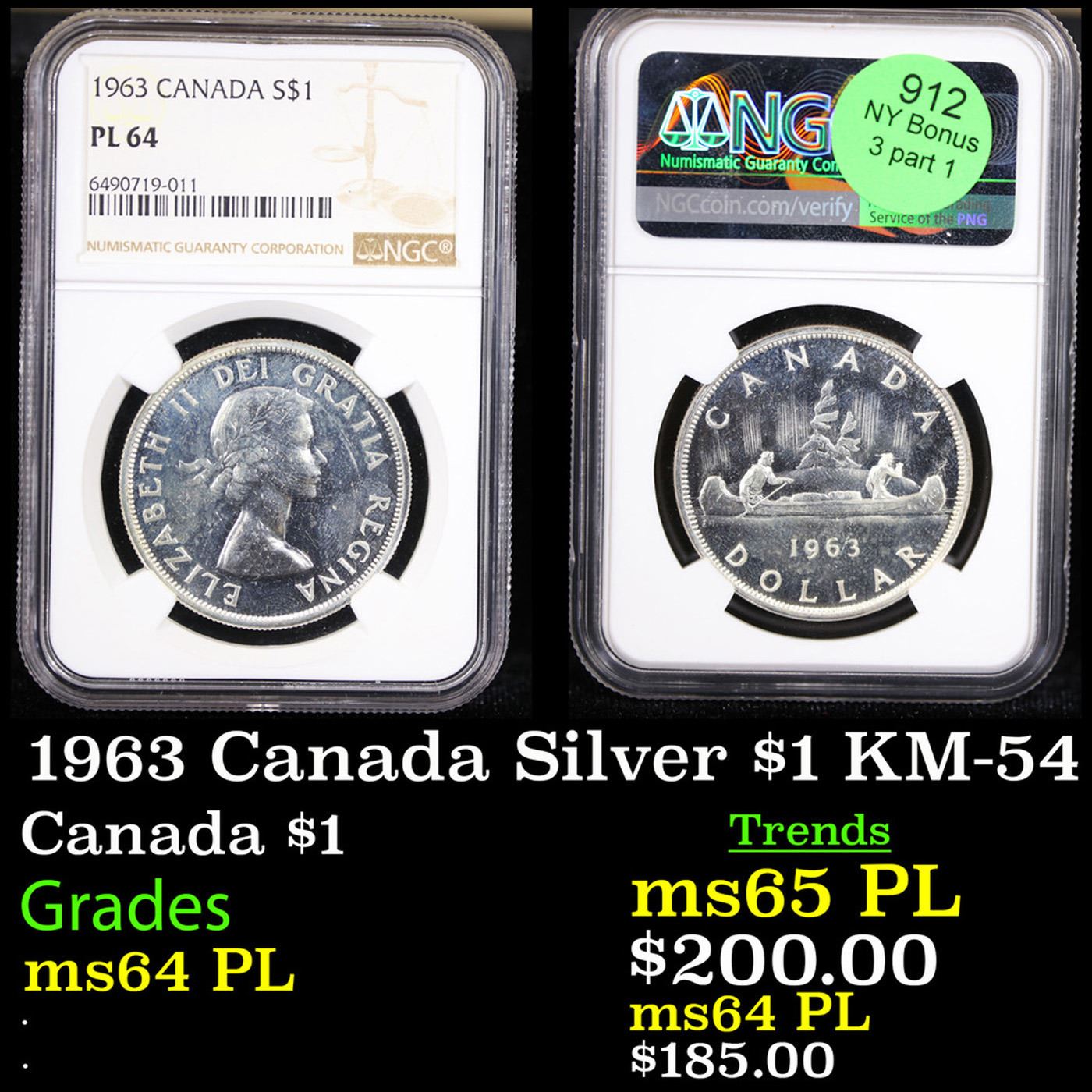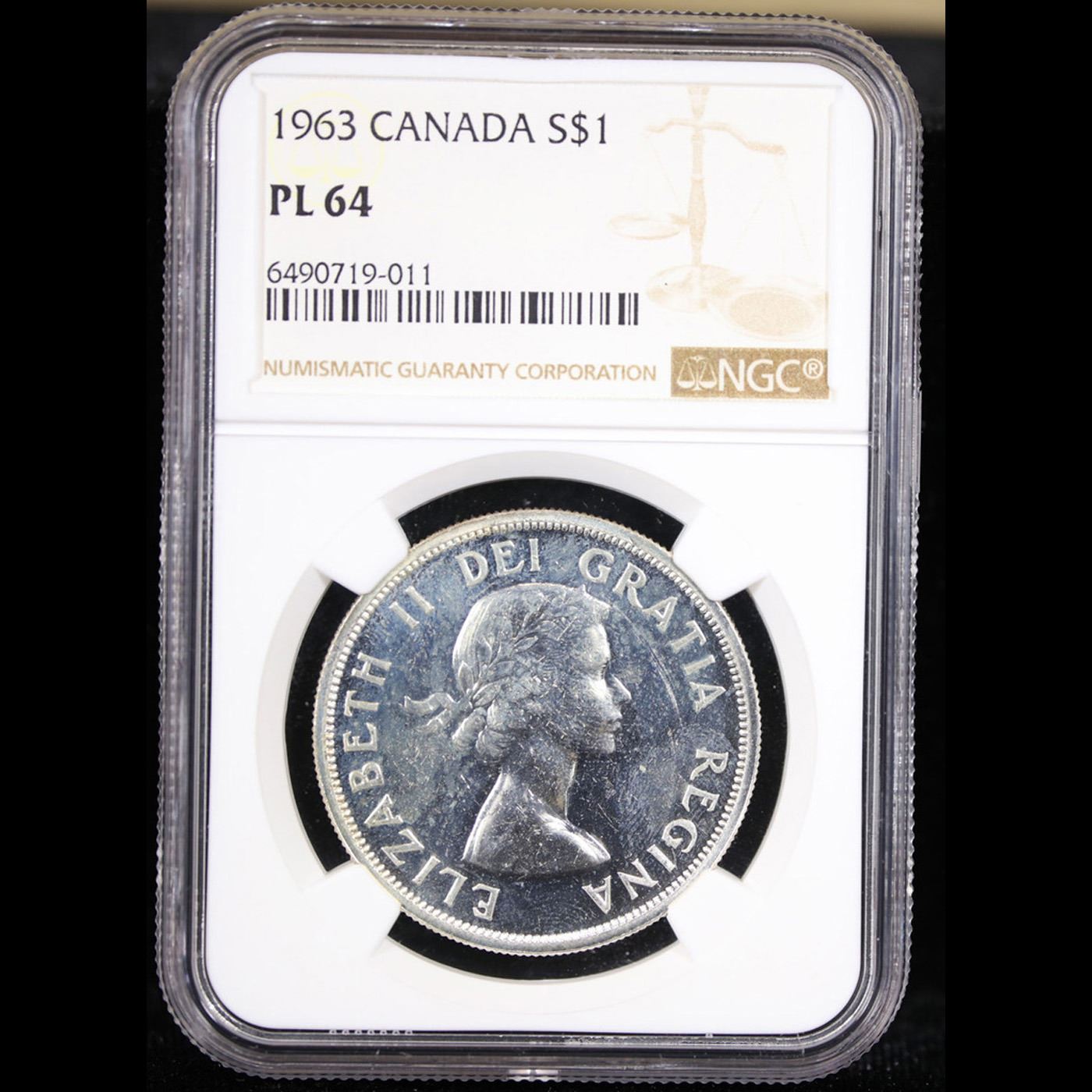 NGC 1963 Canada Silver $1 KM-54 Graded ms64 PL By NGC.