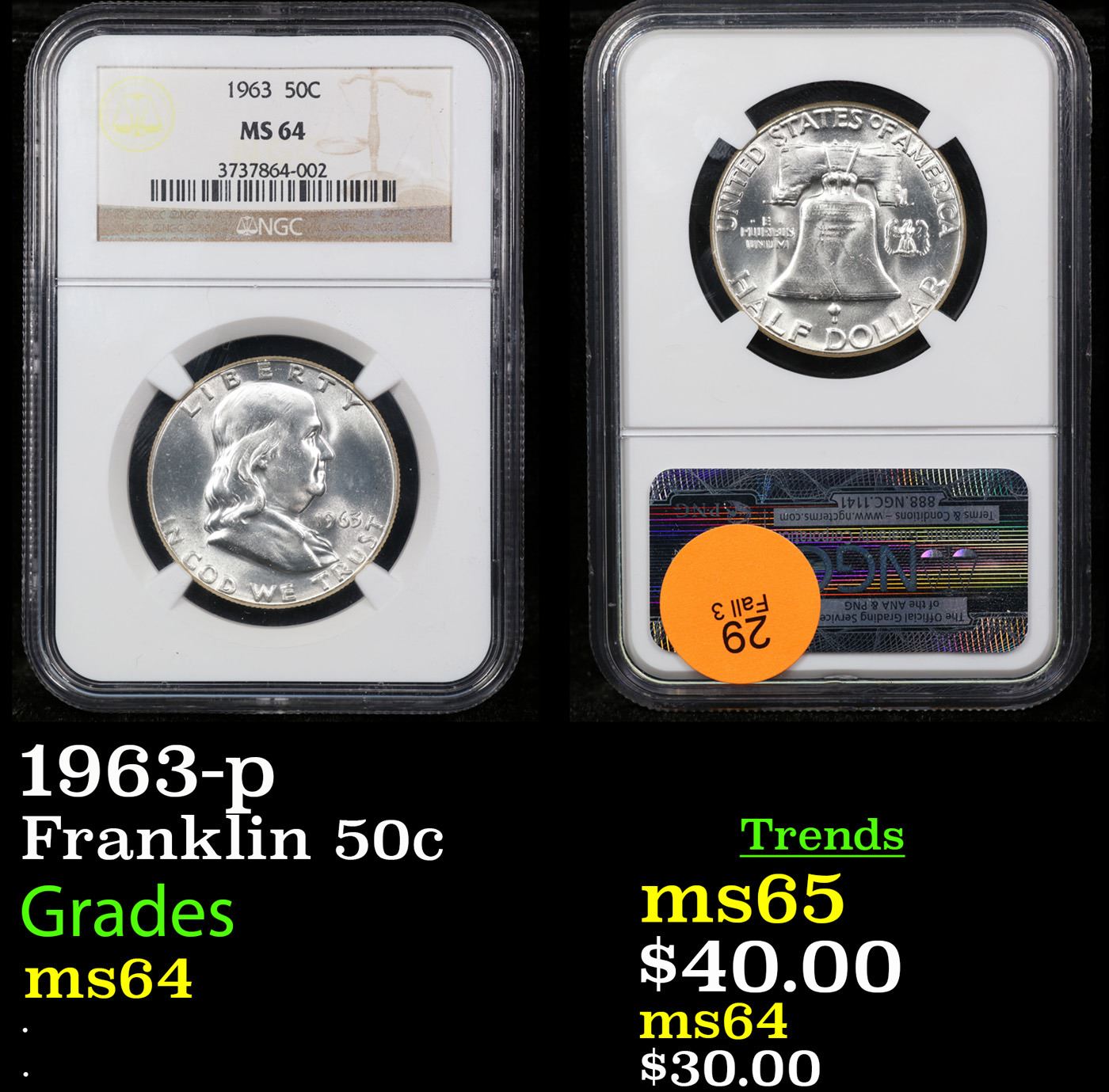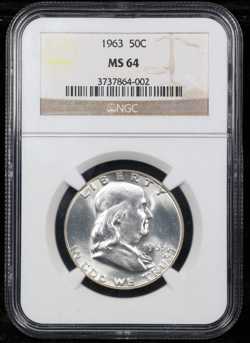 NGC 1963-p Franklin Half Dollar 50c Graded ms64 BY NGC.