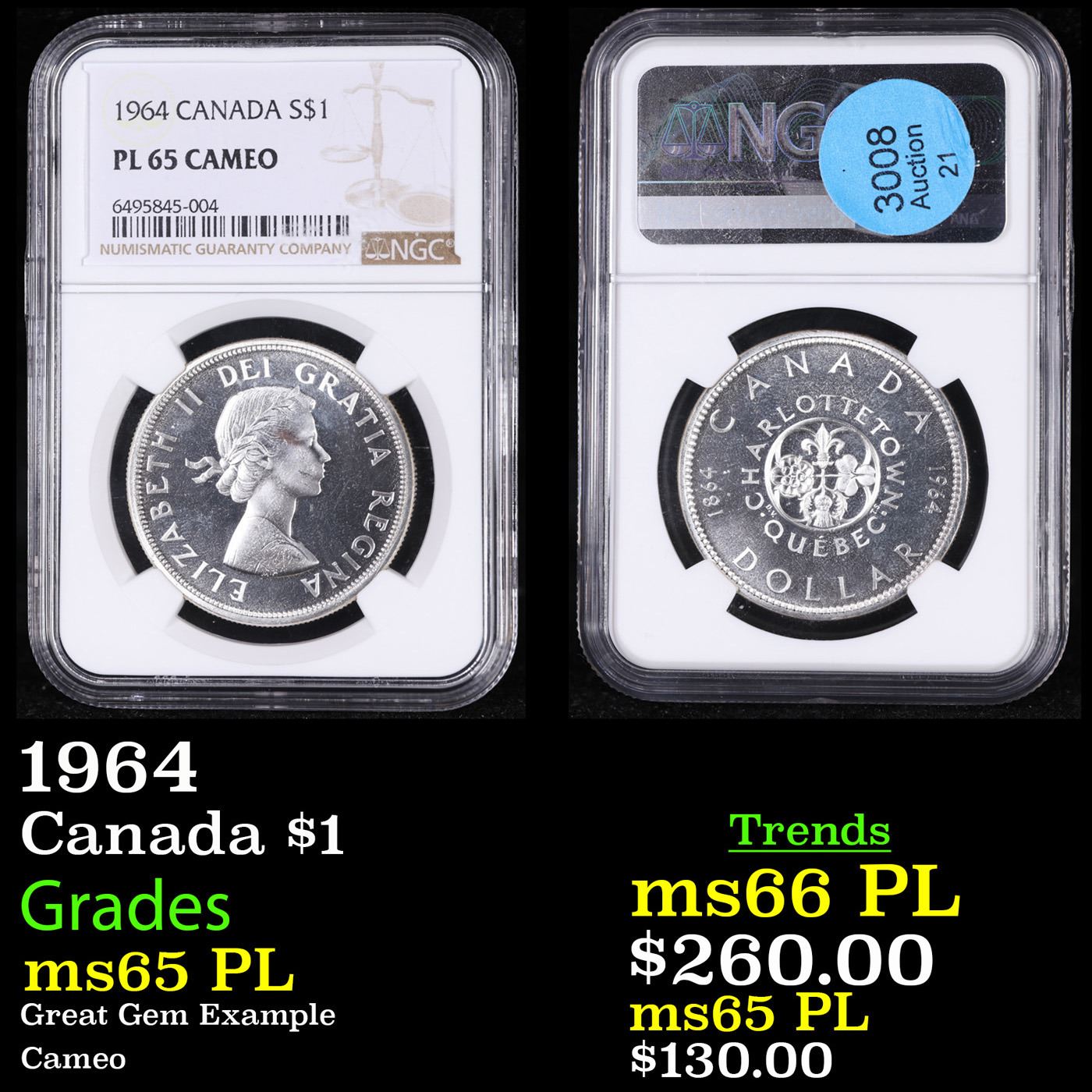 NGC 1964 Canada Dollar $1 Graded ms65 PL BY NGC.