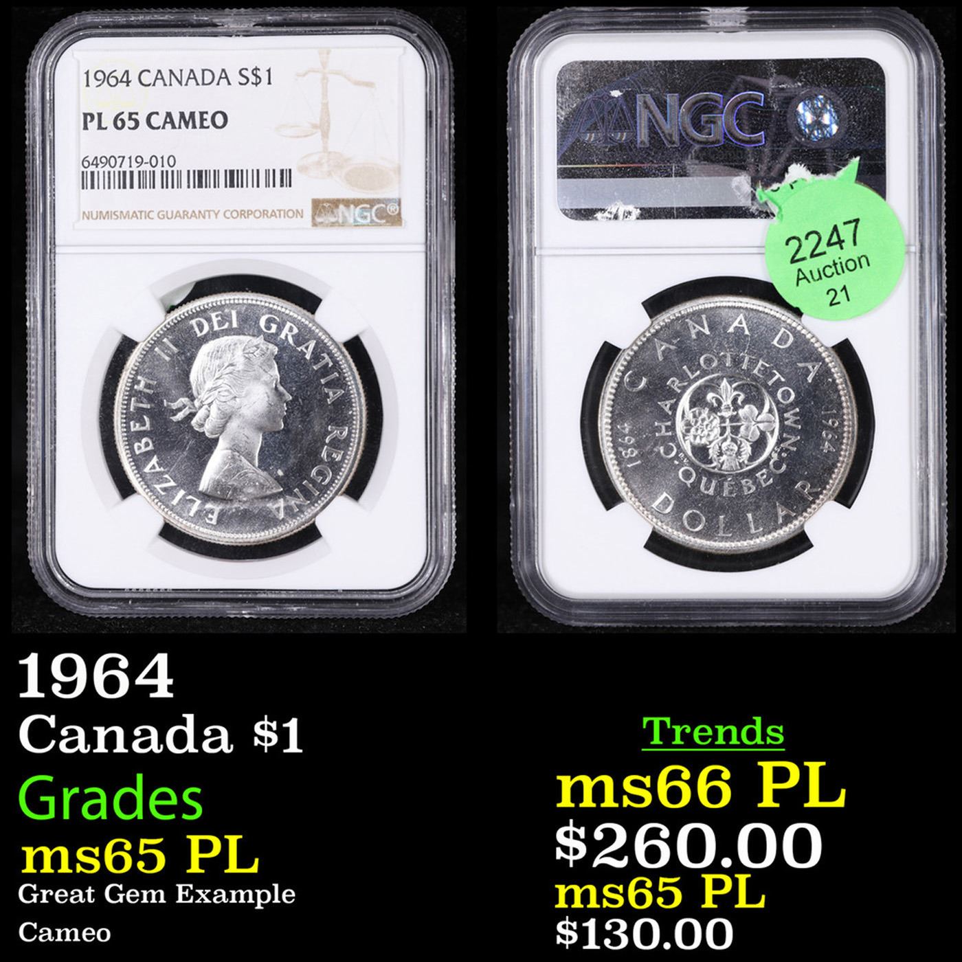 NGC 1964 Canada Dollar $1 Graded ms65 PL BY NGC.