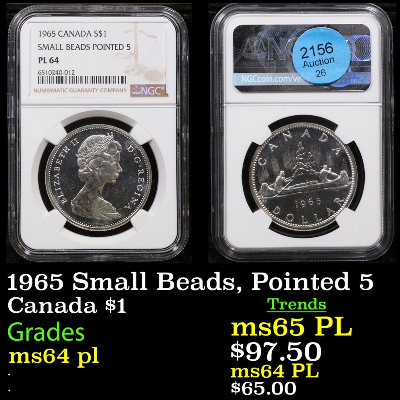 NGC 1965 Small Beads, Pointed 5 Canada Dollar $1 Graded ms64 pl By NGC