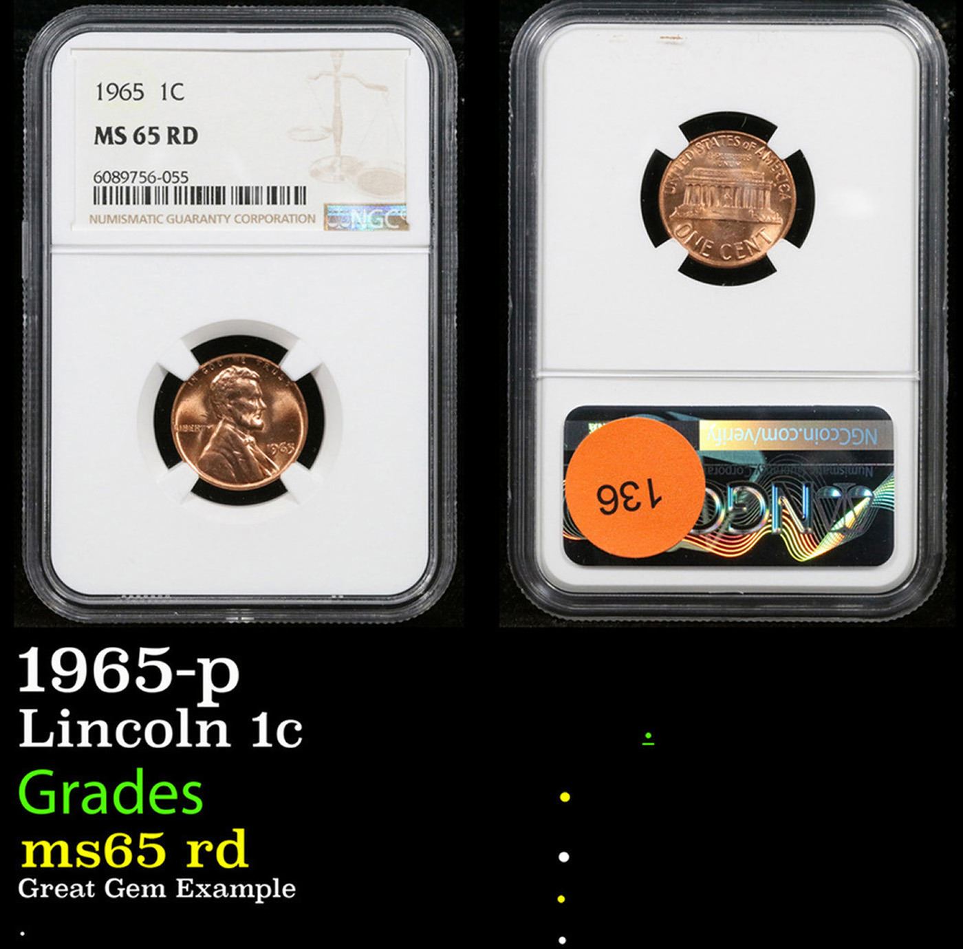 NGC 1965-p Lincoln Cent 1c Graded ms65 rd By NGC.