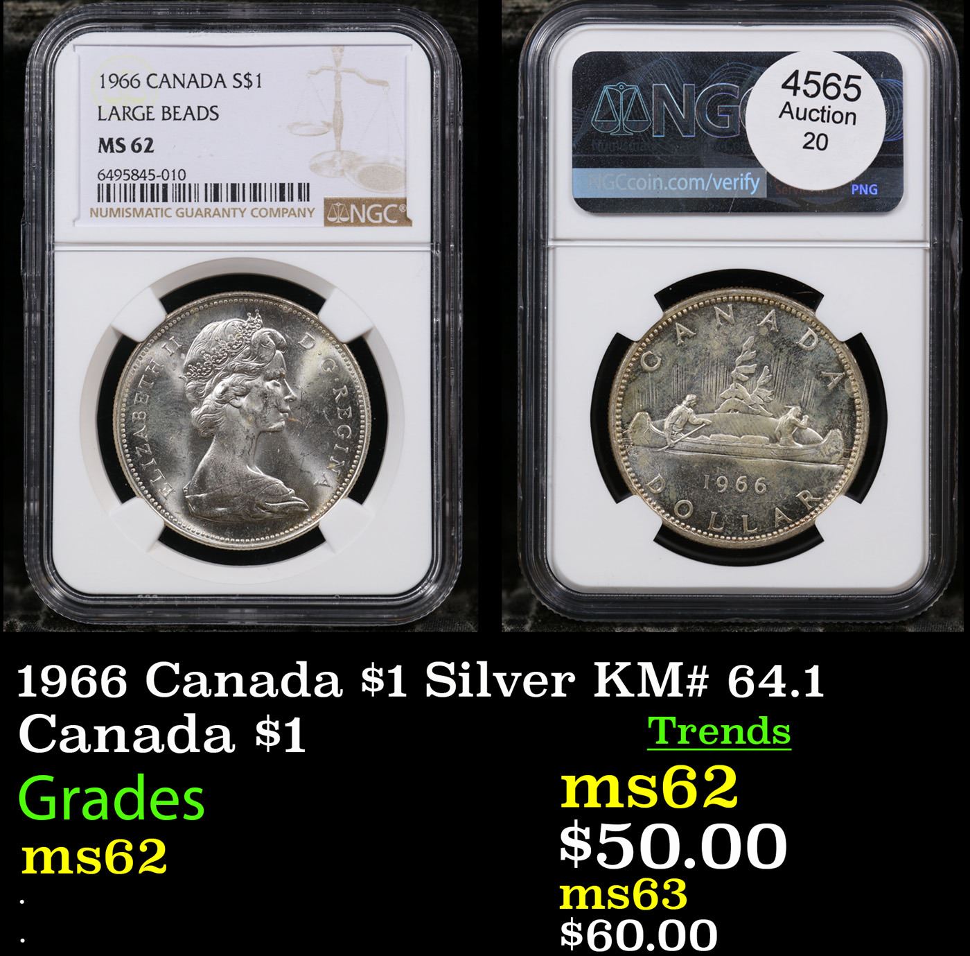 NGC 1966 Canada $1 Silver KM# 64.1 Canada Dollar $1 Graded ms62 By NGC.