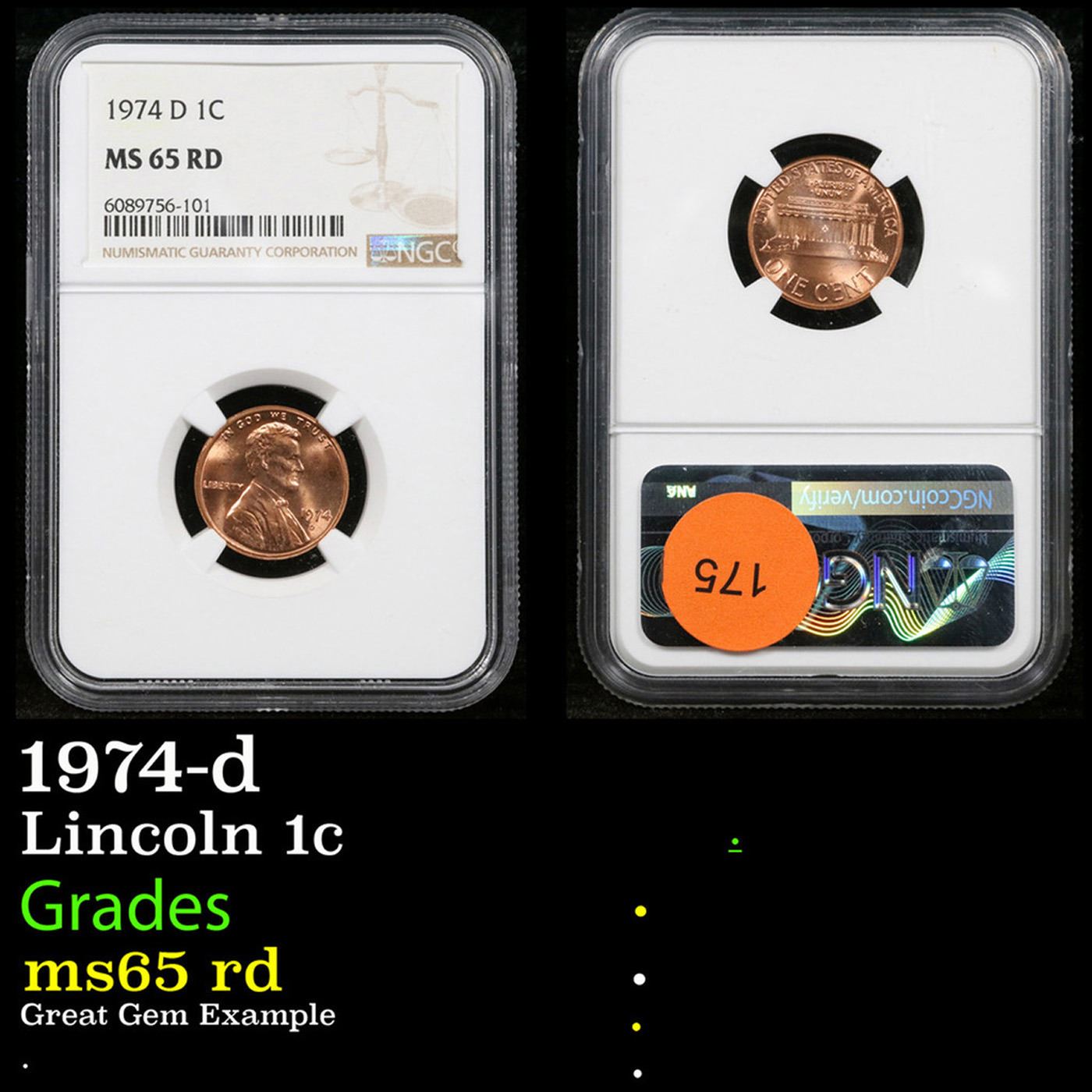 NGC 1974-d Lincoln Cent 1c Graded ms65 rd By NGC.
