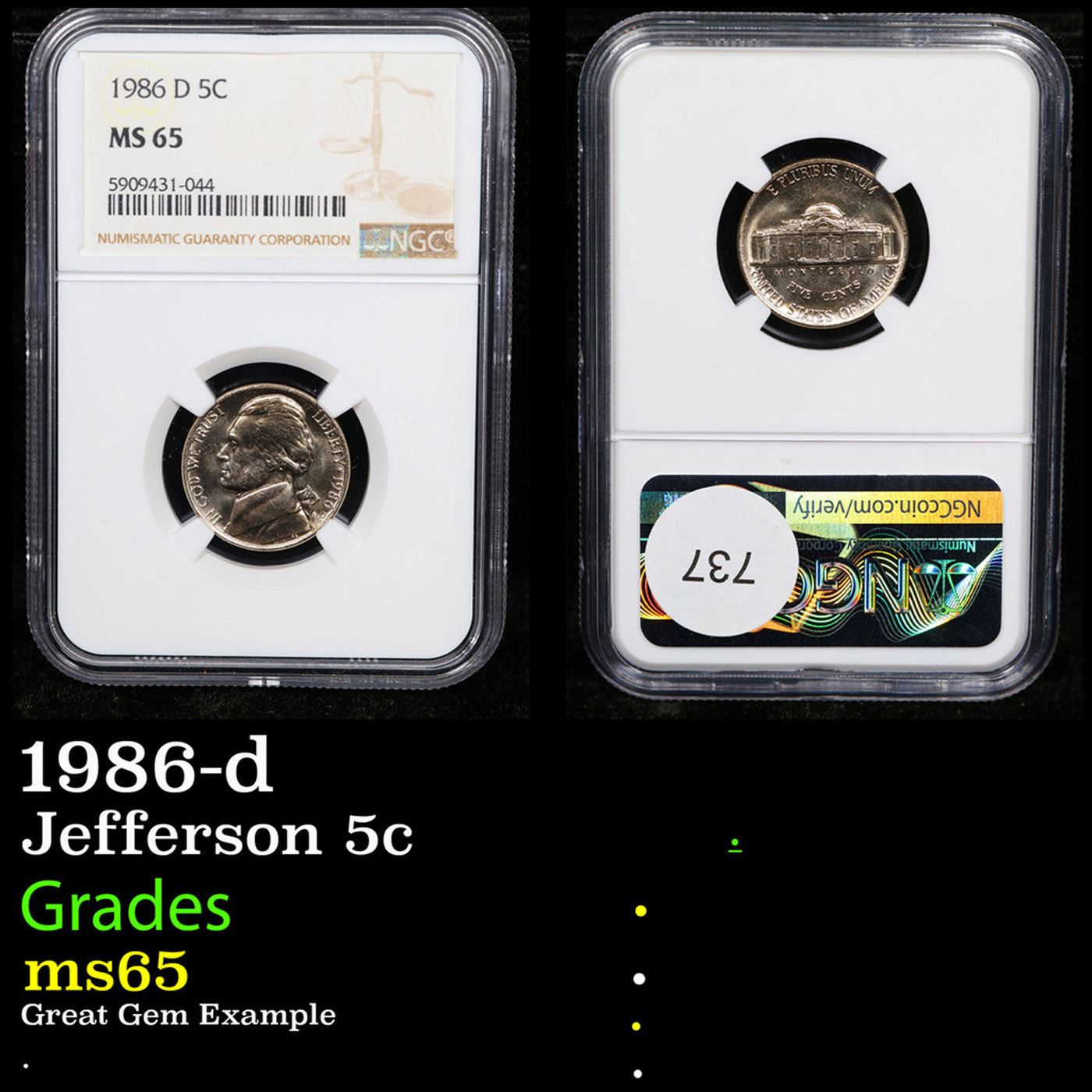 NGC 1986-d Jefferson Nickel 5c Graded ms65 By NGC.