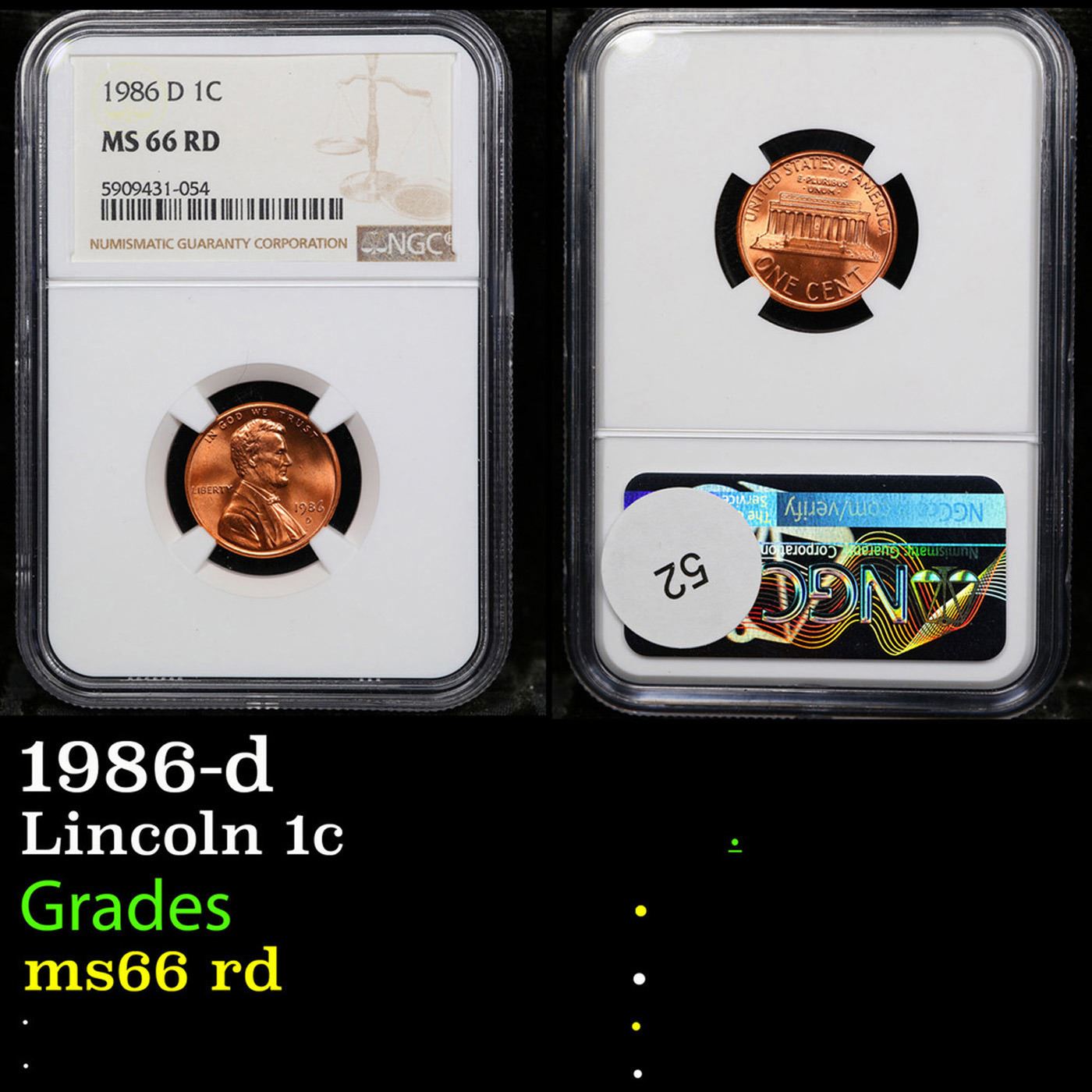 NGC 1986-d Lincoln Cent 1c Graded ms66 rd By NGC.
