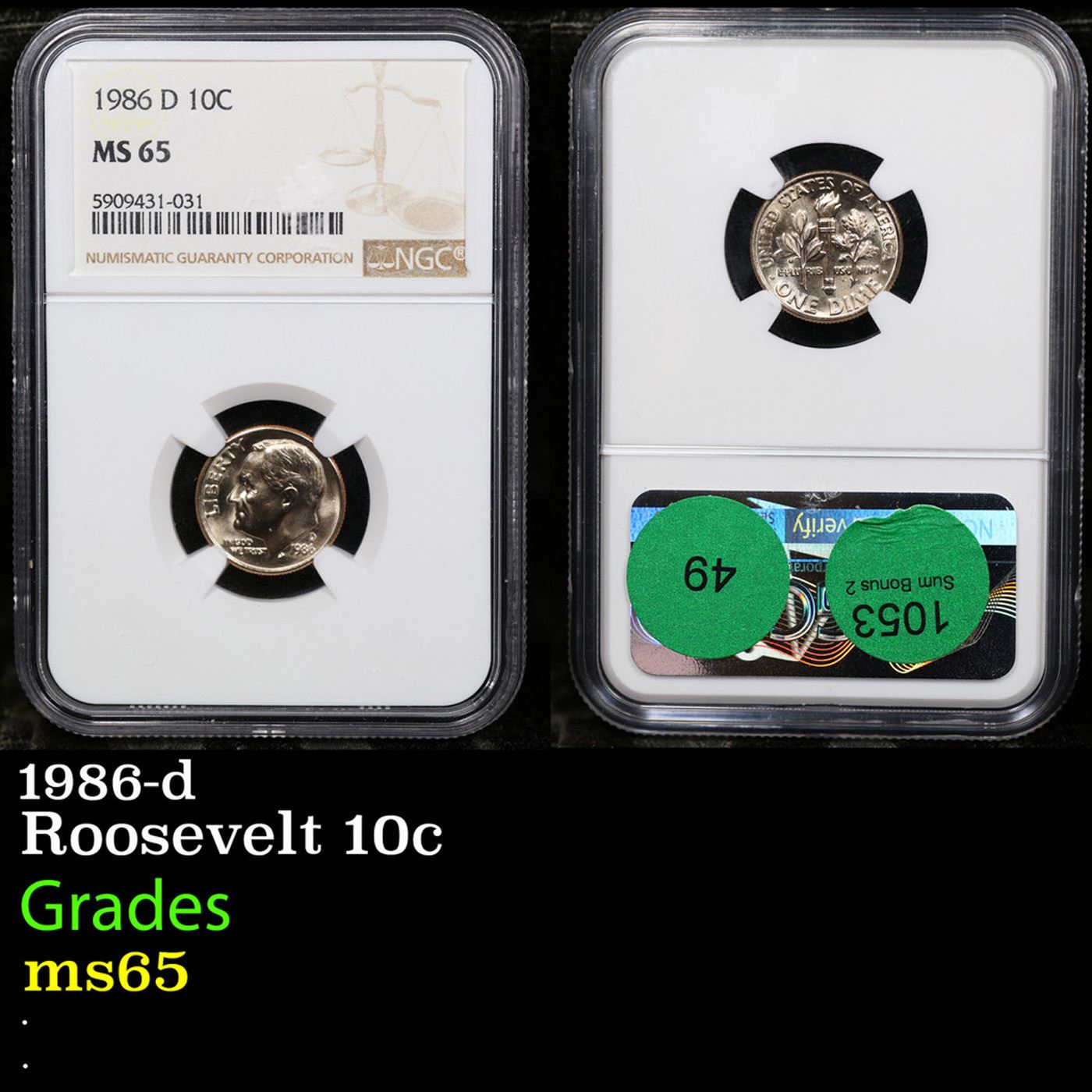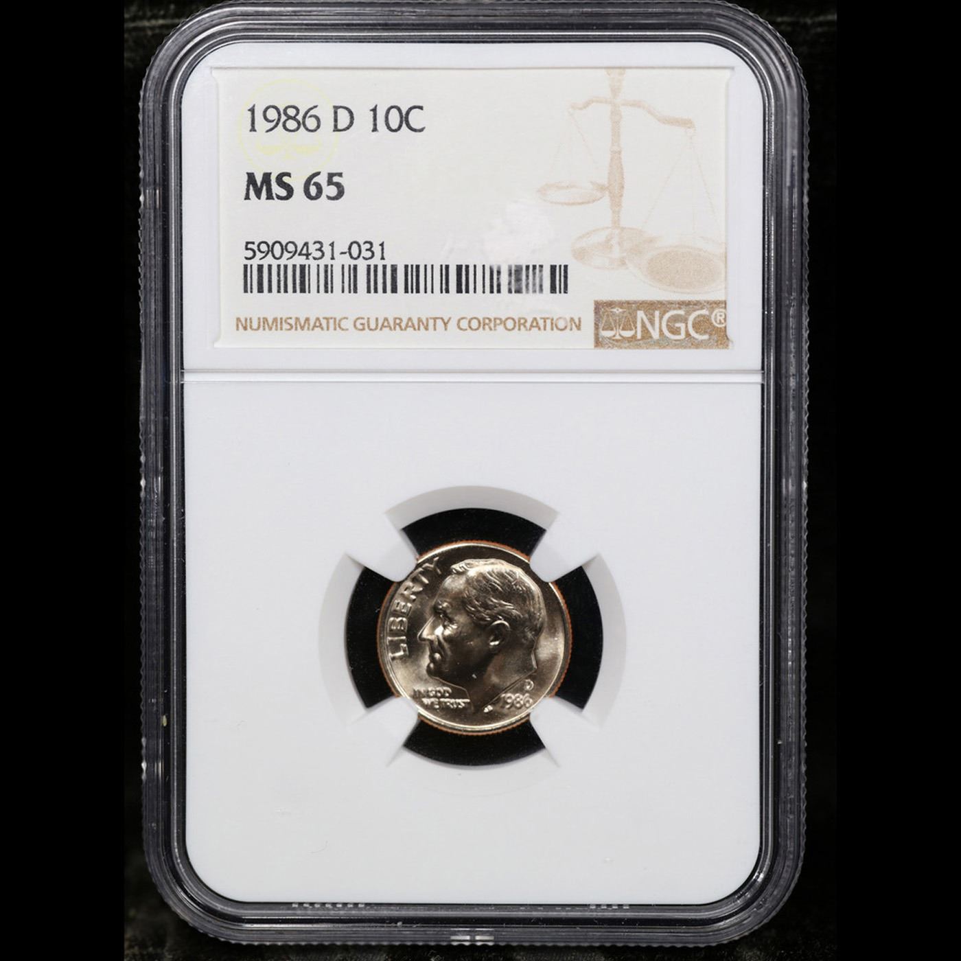 NGC 1986-d Roosevelt Dime 10c Graded ms65 By NGC.