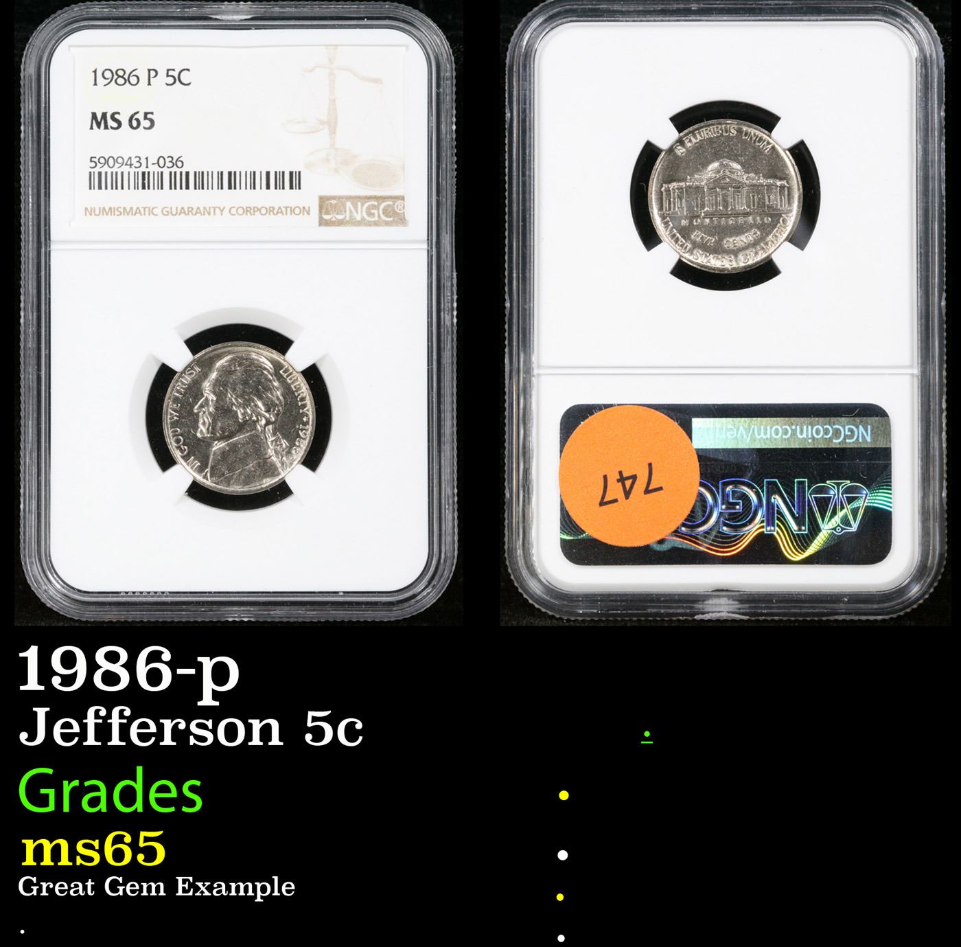 NGC 1986-p Jefferson Nickel 5c Graded ms65 By NGC.