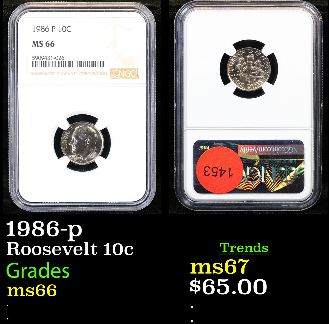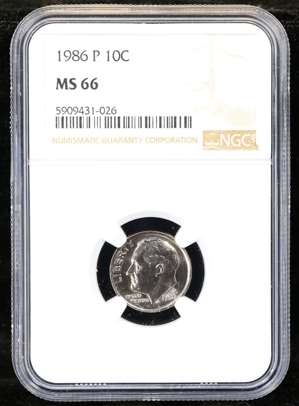 NGC 1986-p Roosevelt Dime 10c Graded ms66 By NGC.
