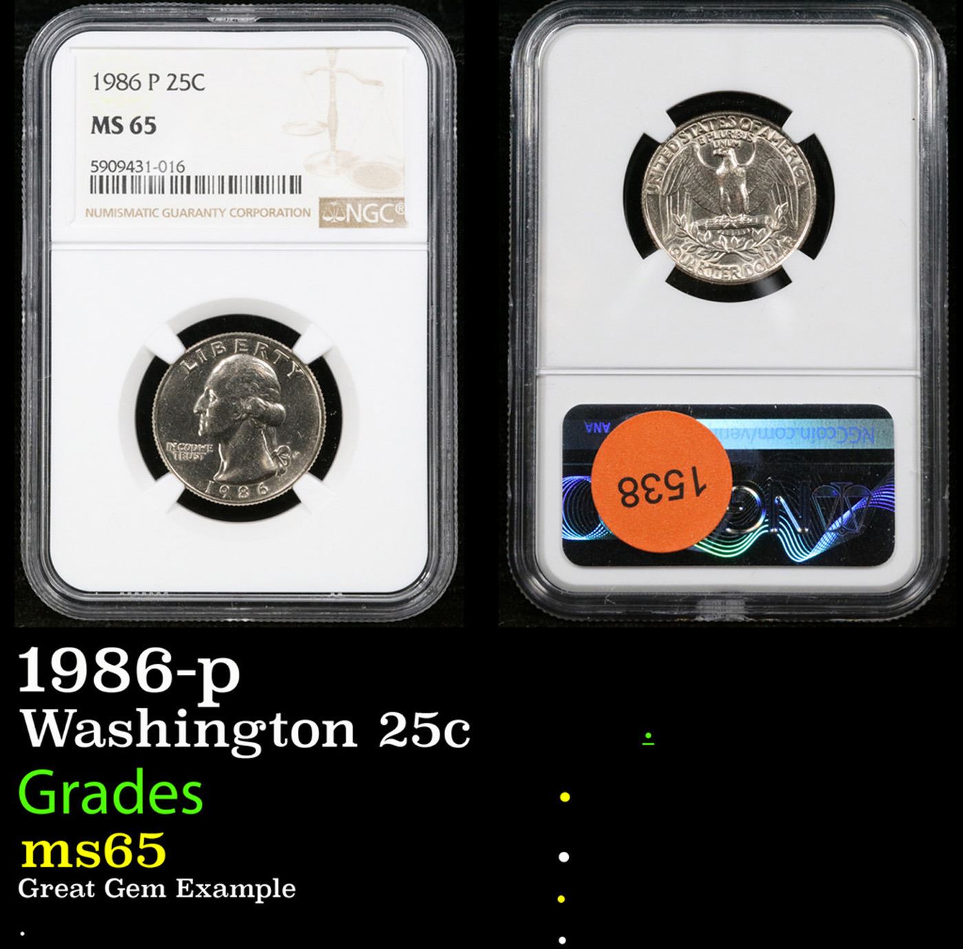 NGC 1986-p Washington Quarter 25c Graded ms65 By NGC.