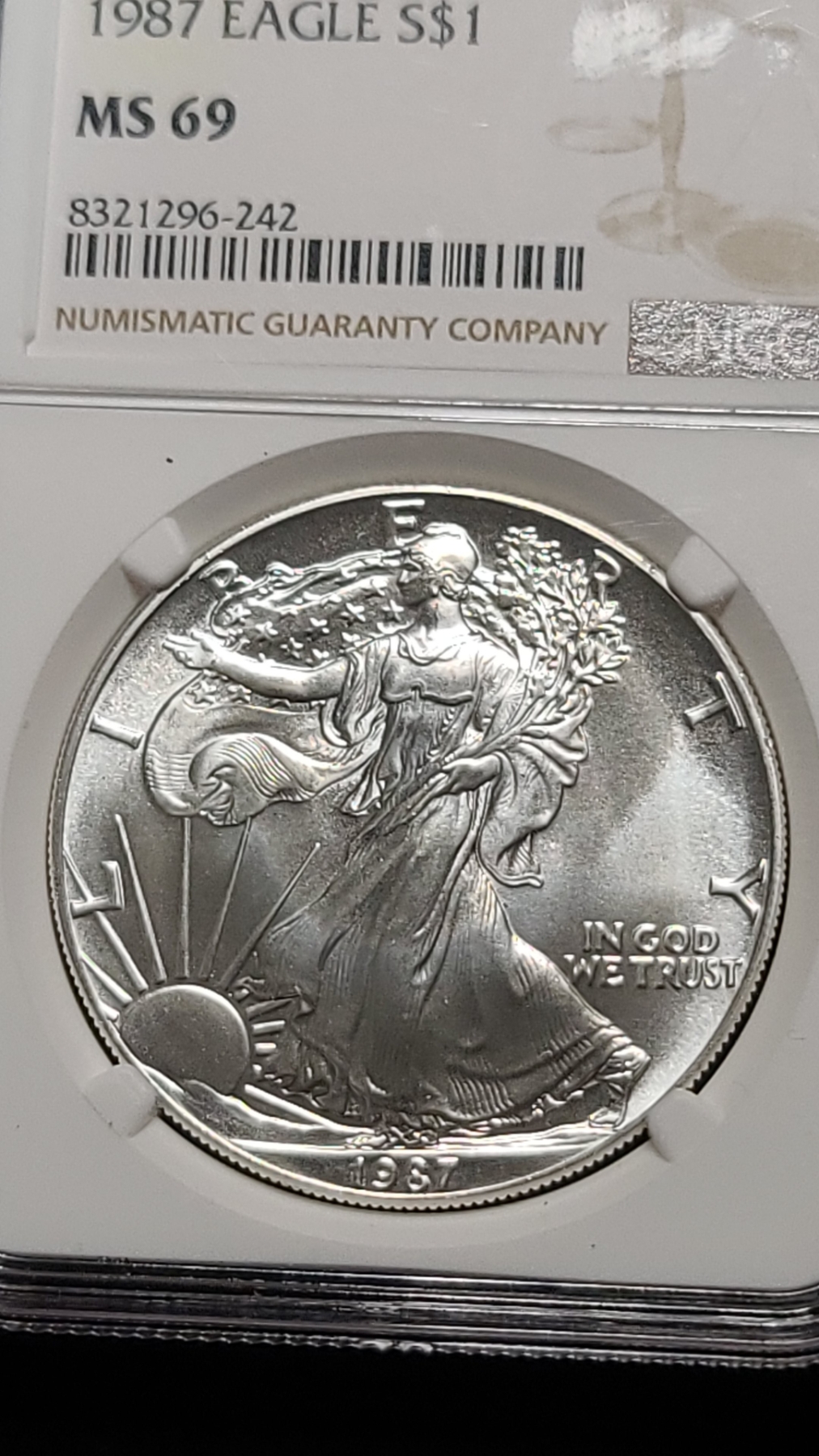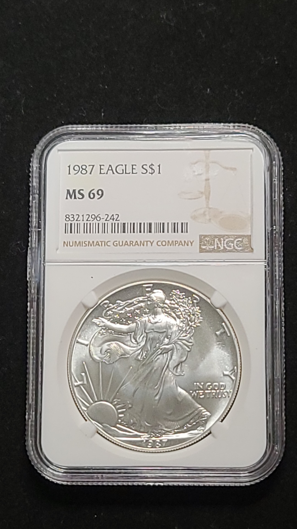 NGC 1987 MS 69 1 Troy Ounce 99.9% Silver American Eagle Dollar