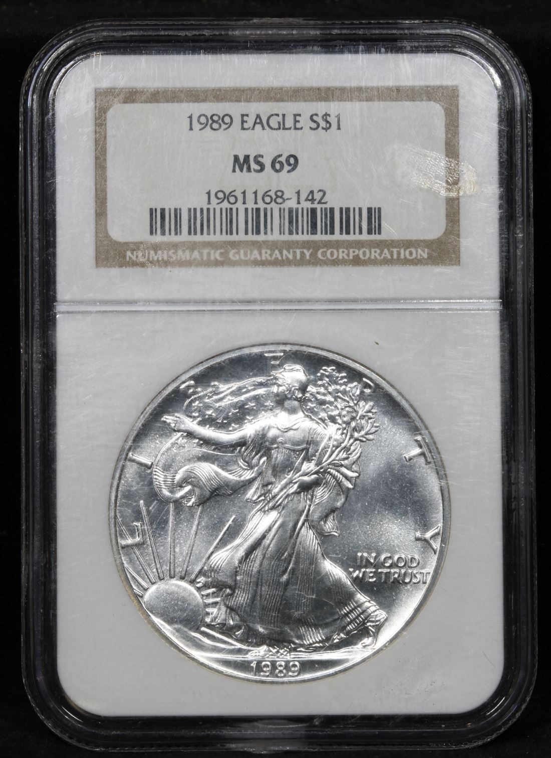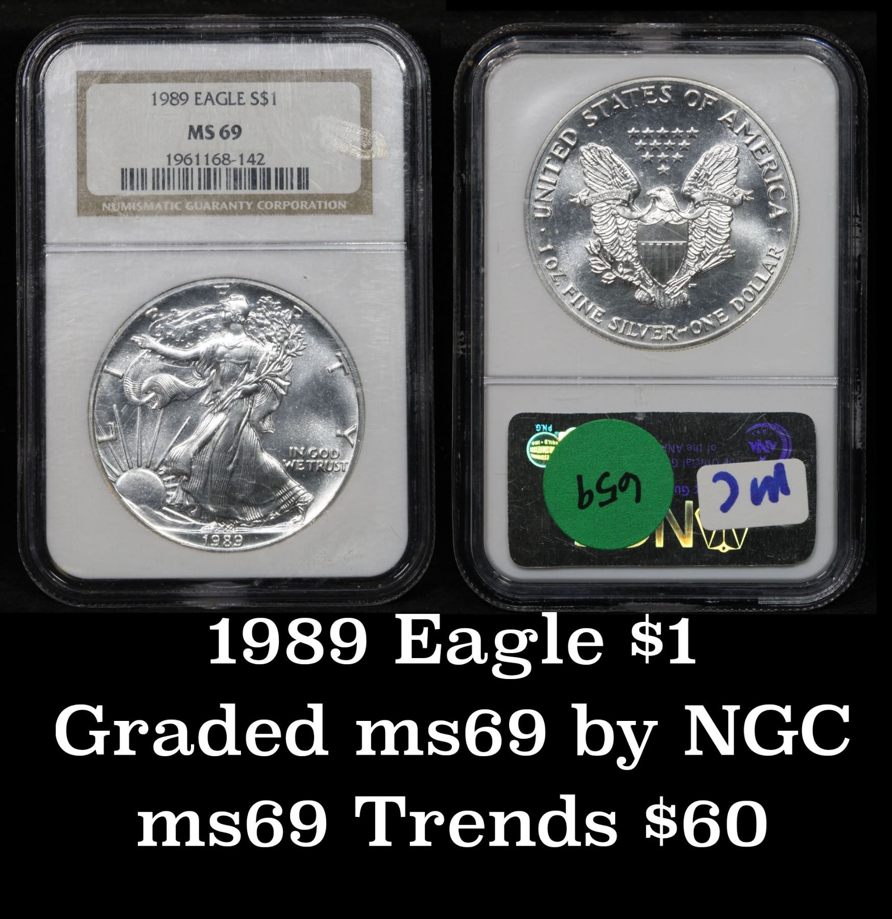 NGC 1989 Silver Eagle Dollar $1 Graded ms69 By NGC.