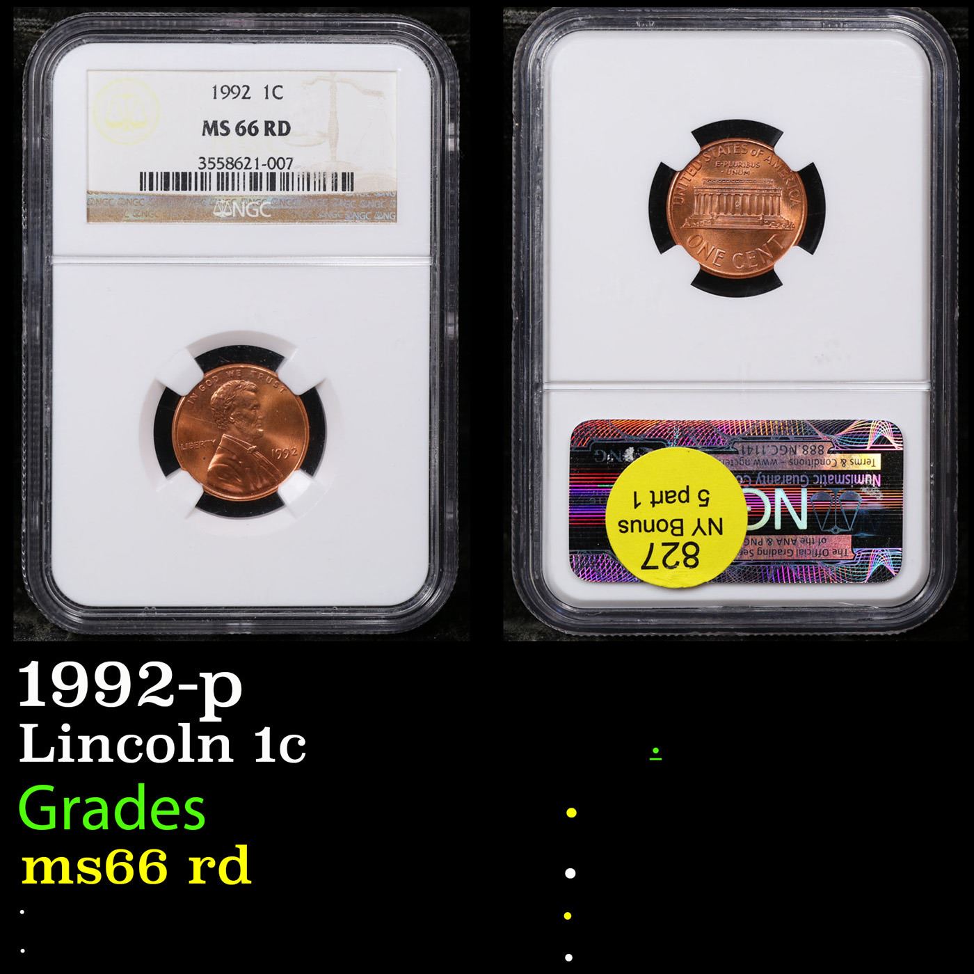 NGC 1992-p Lincoln Cent 1c Graded ms66 rd BY NGC.