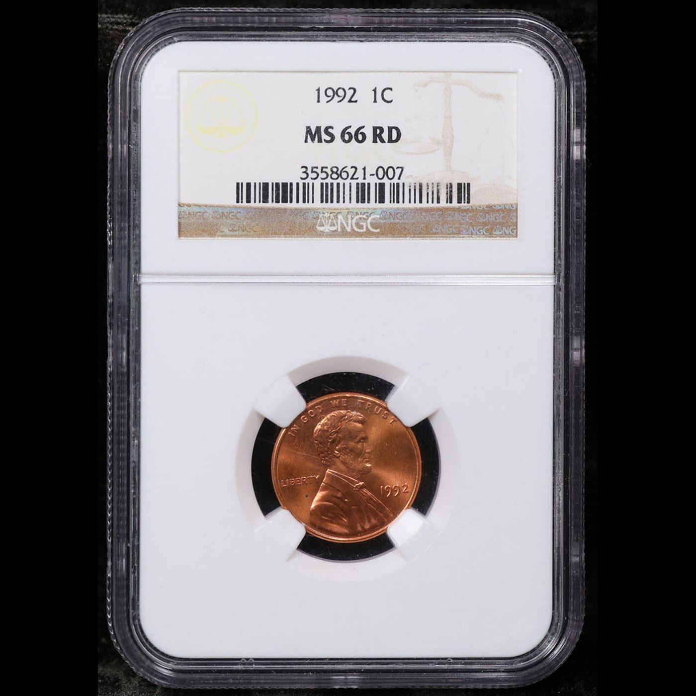 NGC 1992-p Lincoln Cent 1c Graded ms66 rd BY NGC.
