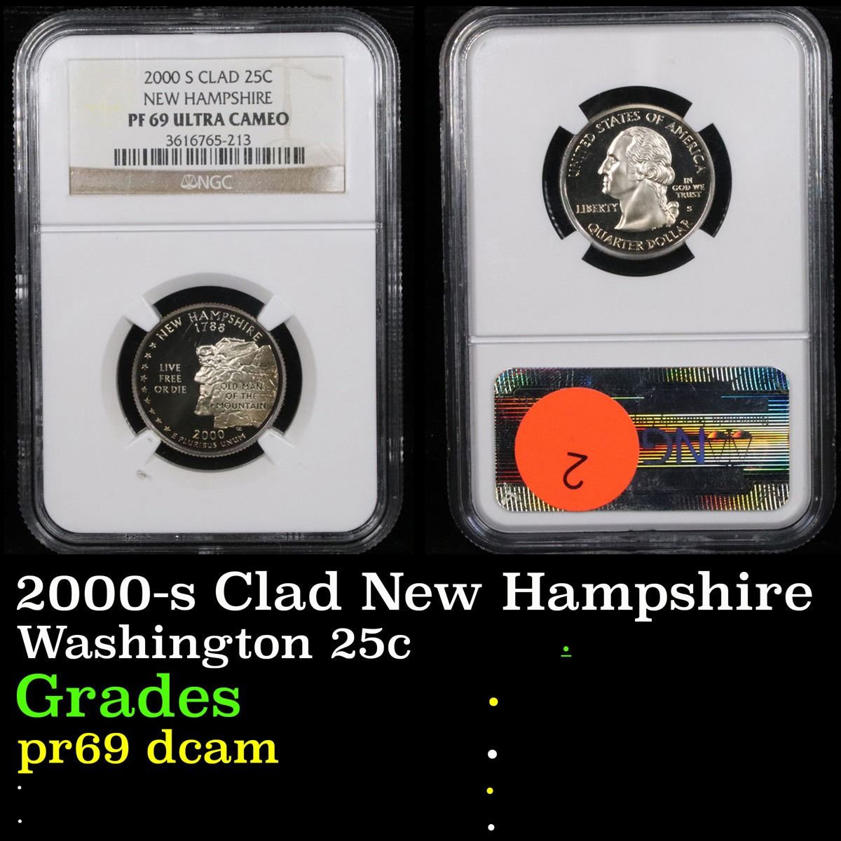 NGC 2000-s Clad New Hampshire . . Washington Quarter 25c Graded pr69 dcam By NGC.