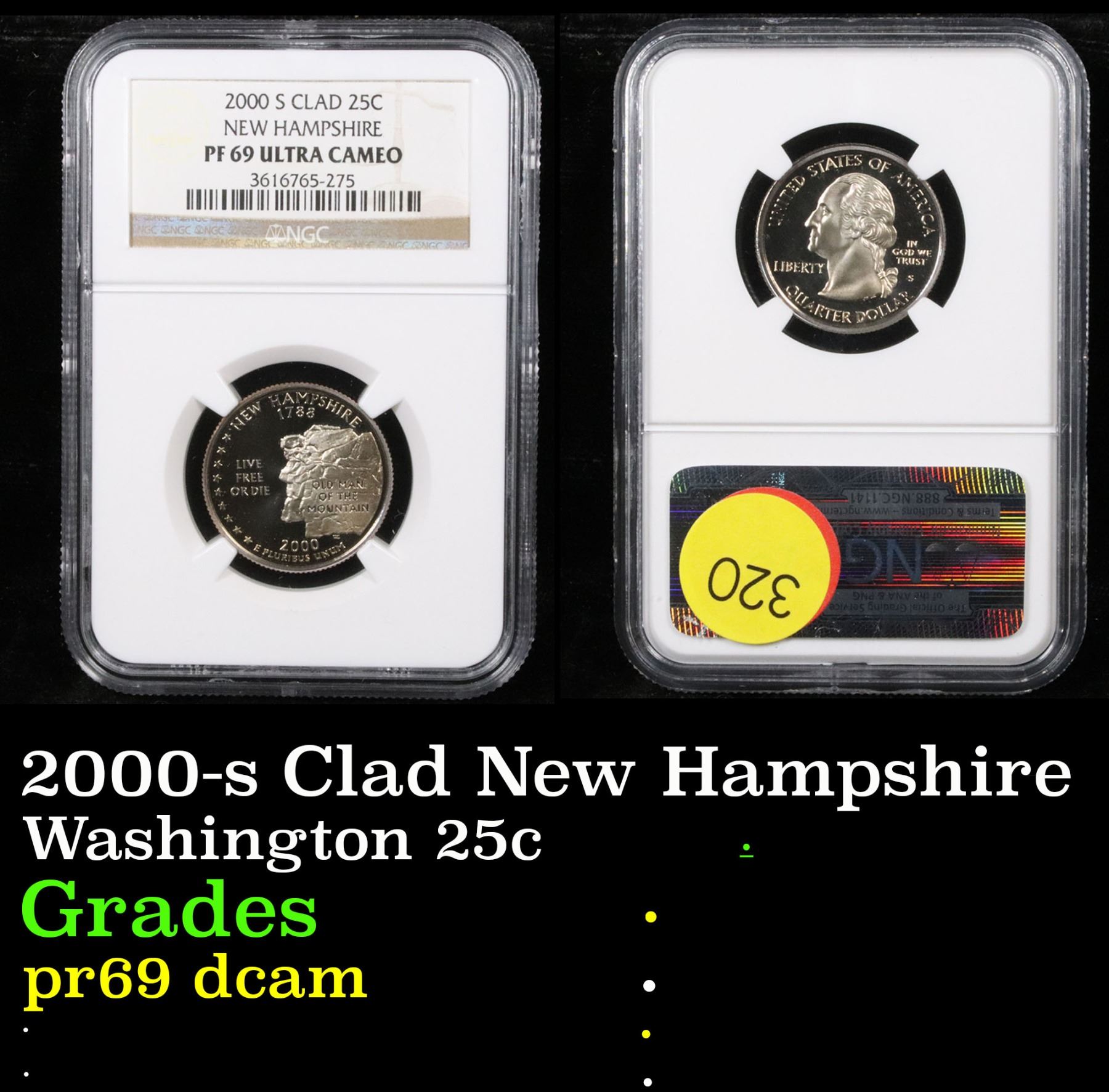 NGC 2000-s Clad New Hampshire . . Washington Quarter 25c Graded pr69 dcam By NGC.