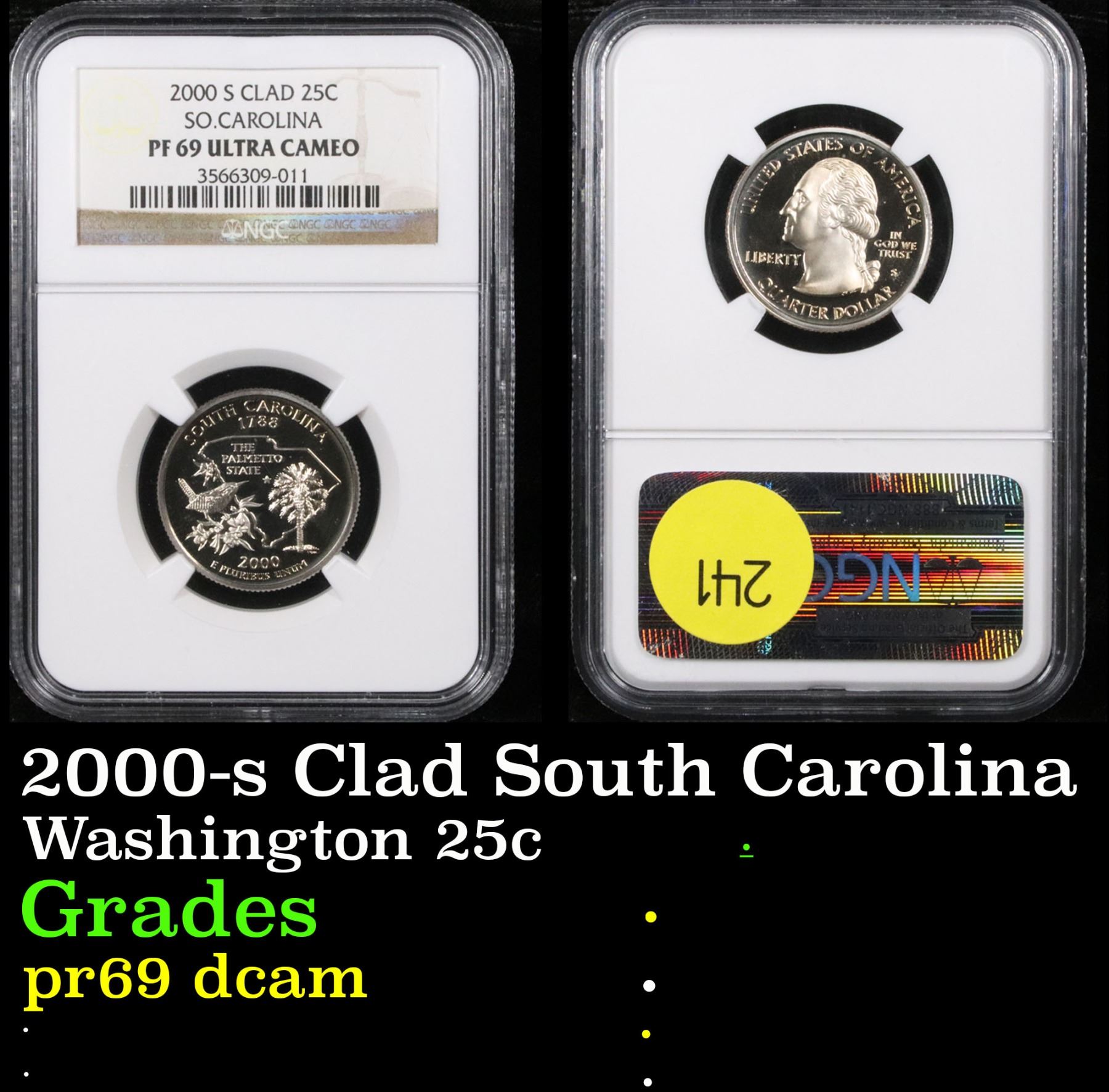 NGC 2000-s Clad South Carolina . . Washington Quarter 25c Graded pr69 dcam By NGC.