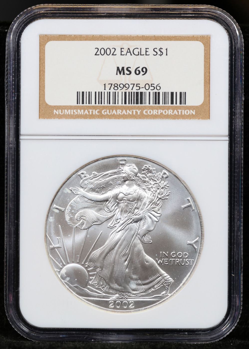 NGC 2002 Silver Eagle Dollar $1 Graded ms69 By NGC.