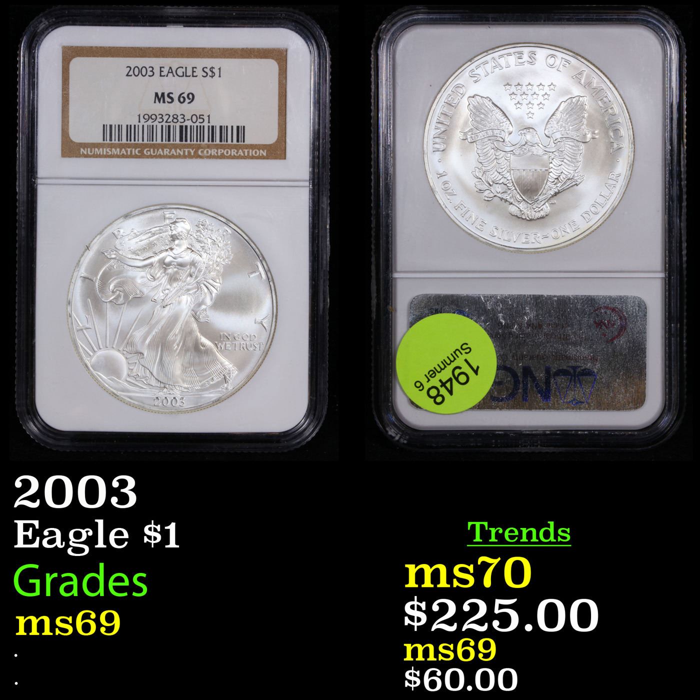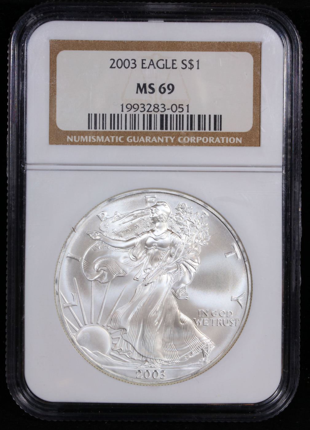 NGC 2003 Silver Eagle Dollar $1 Graded ms69 By NGC.