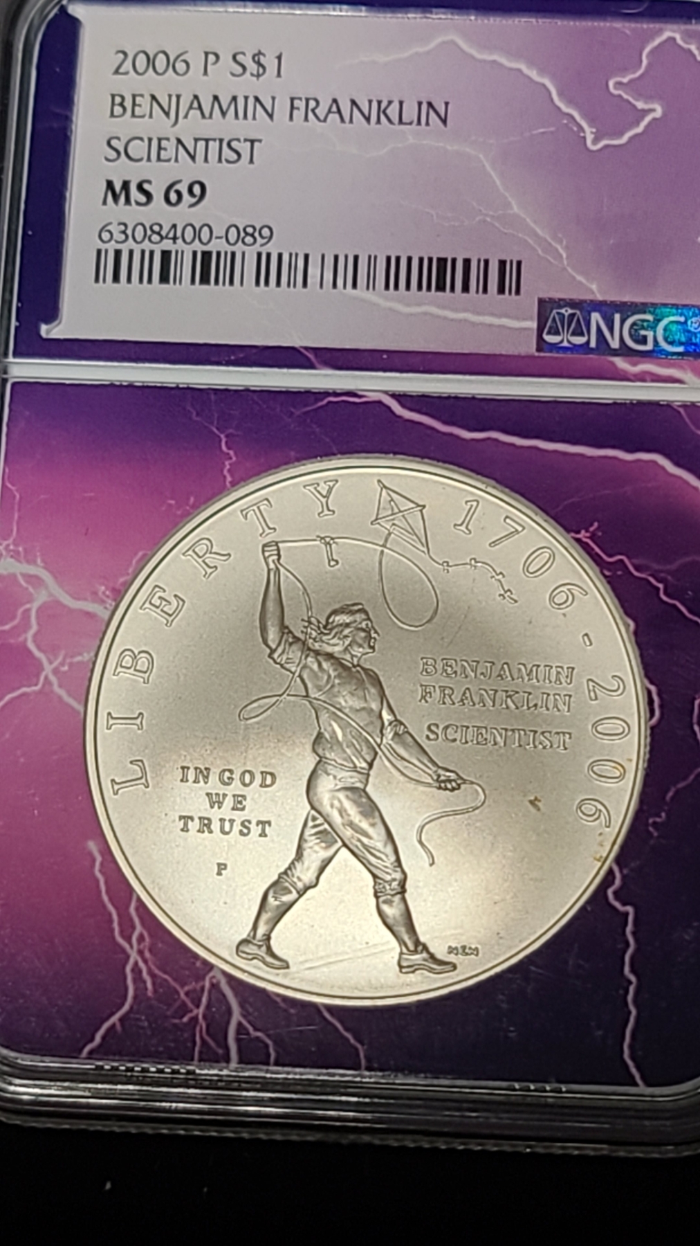 NGC 2006 P Benjamin Franklin Scientist MS 69 90% Silver Coin