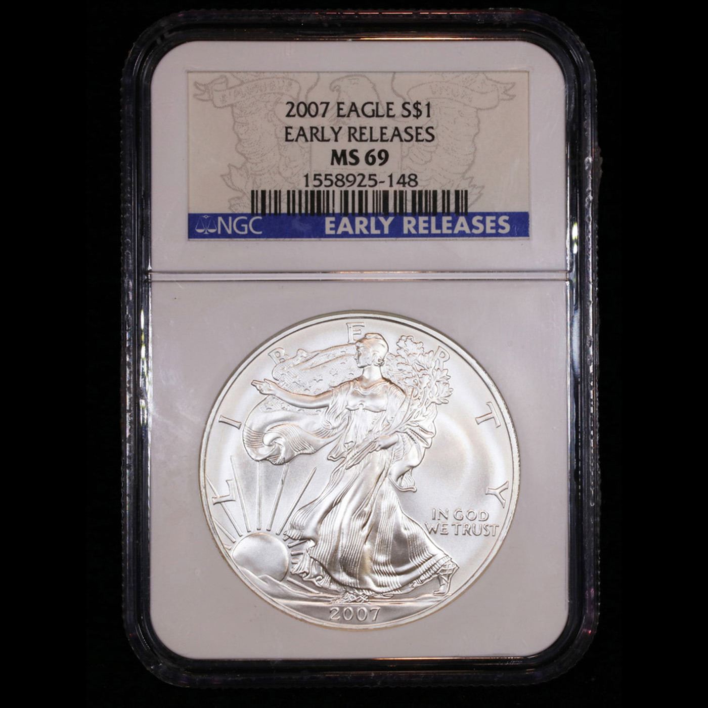 NGC 2007 Silver Eagle Dollar $1 Graded ms69 By NGC.