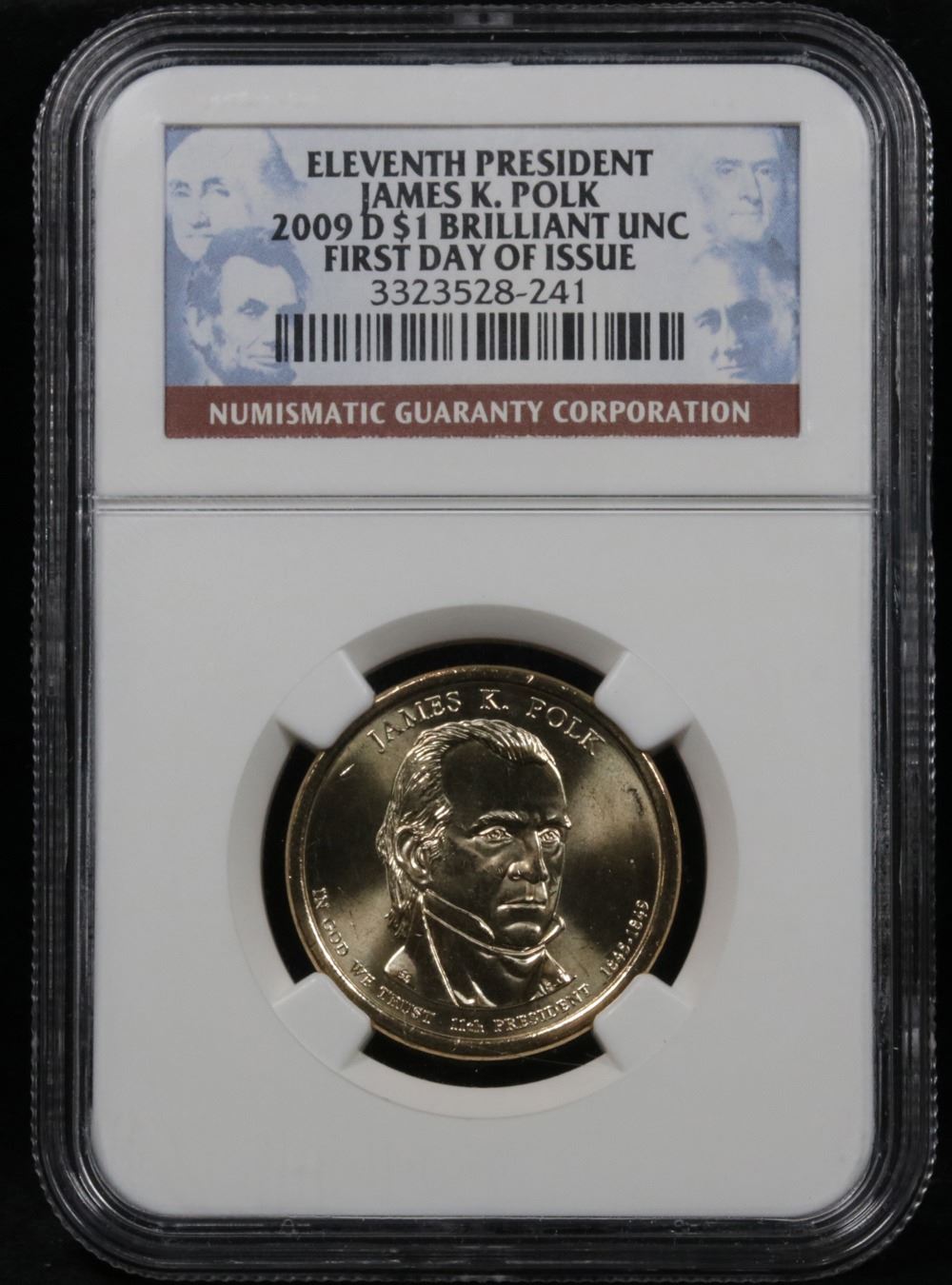 NGC 2009-d James K. Polk First Day Of Issue Presidential Dollar $1 Graded GEM By NGC.