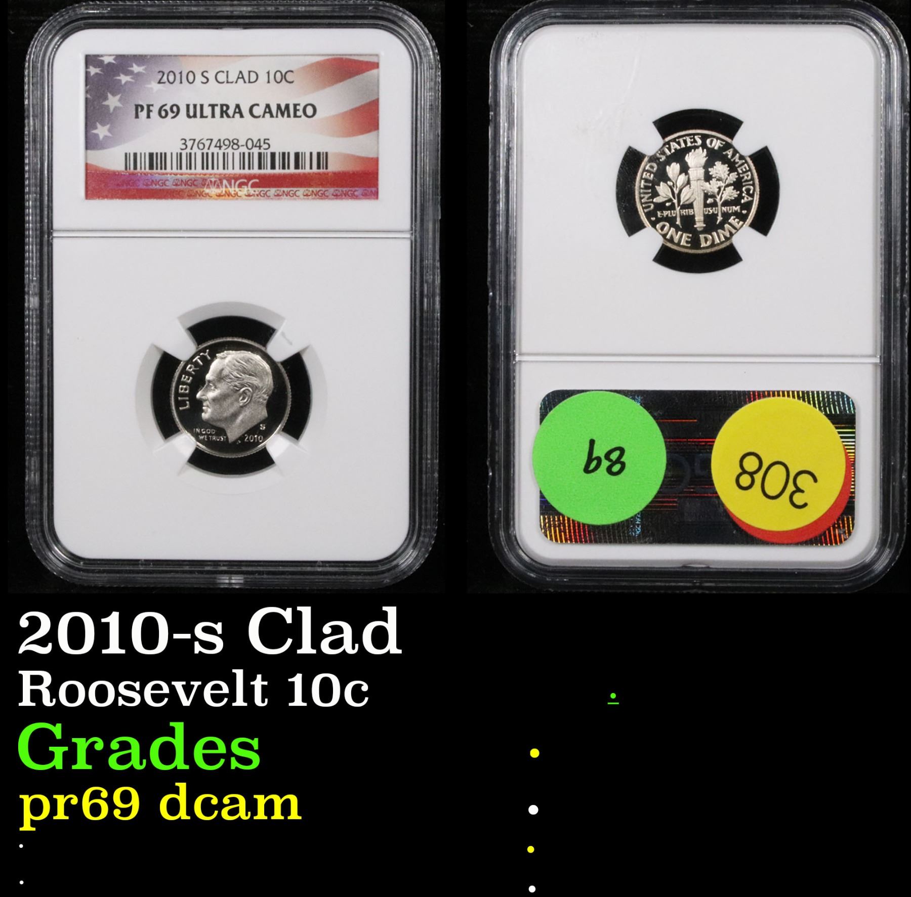 NGC 2010-s Clad . . Roosevelt Dime 10c Graded pr69 dcam By NGC.