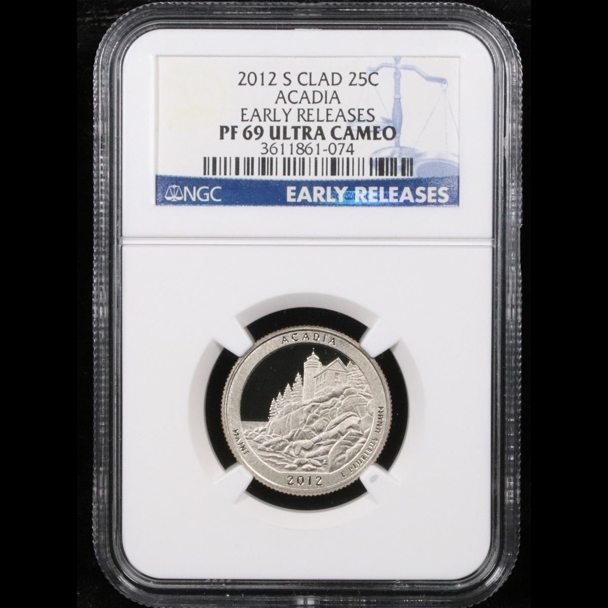 NGC 2012-s Clad Acadia Early Releases . Washington Quarter 25c Graded pr69 dcam By NGC.