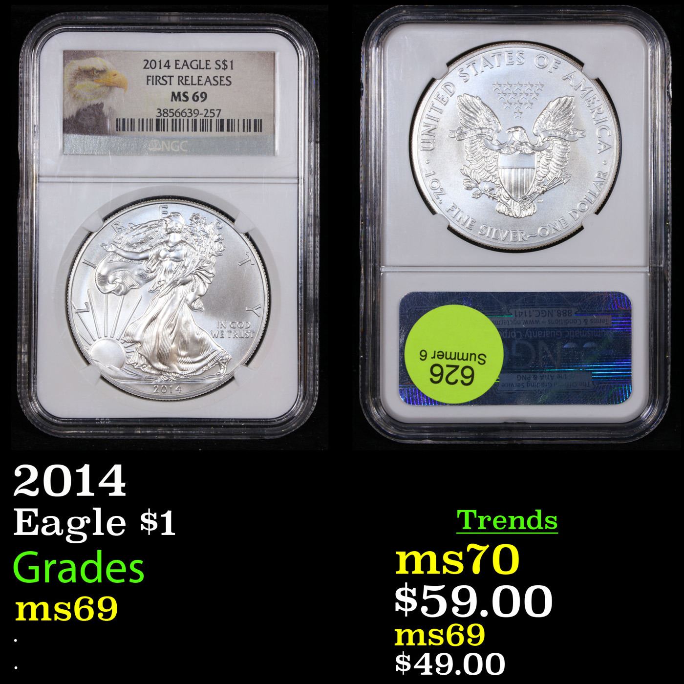 NGC 2014 Silver Eagle Dollar $1 Graded ms69 By NGC.