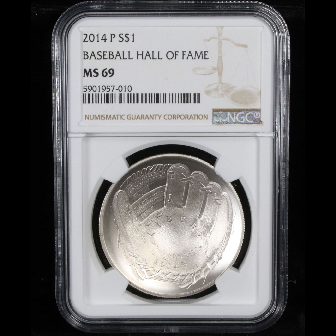 NGC 2014-p Baseball Hall of Fame Modern Commem Dollar $1 Graded ms69 By NGC.