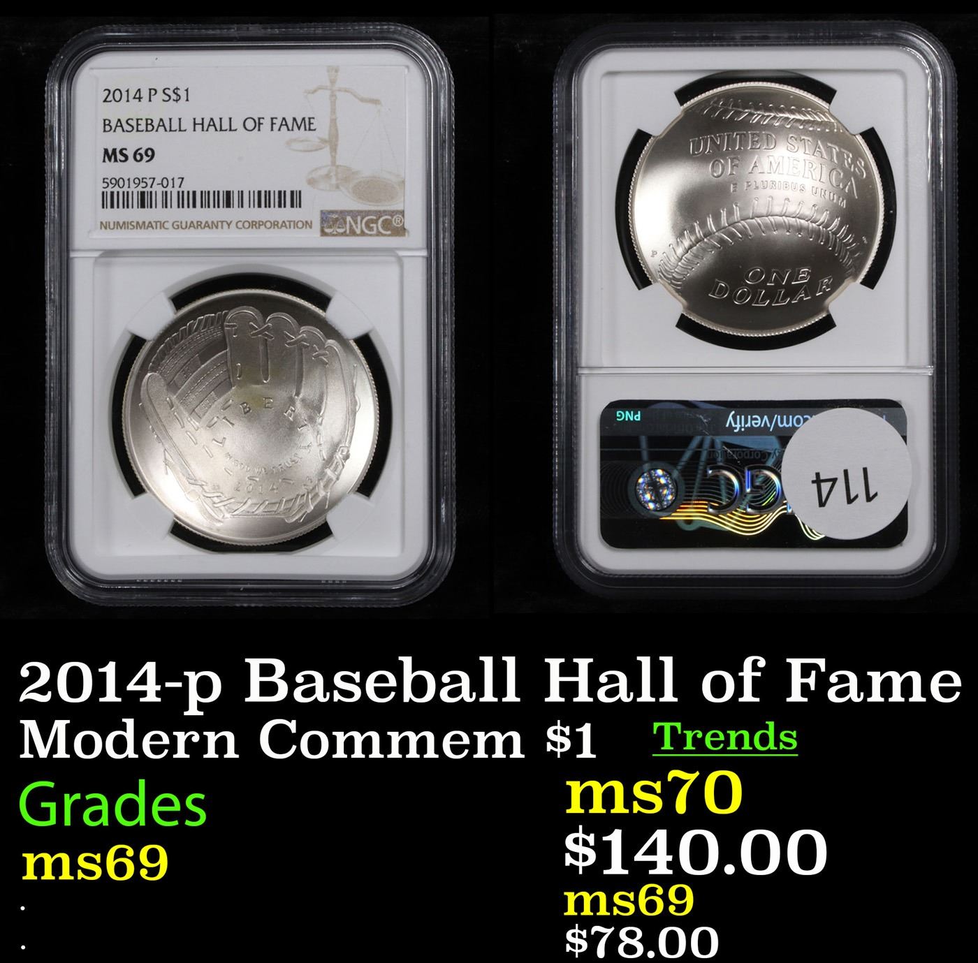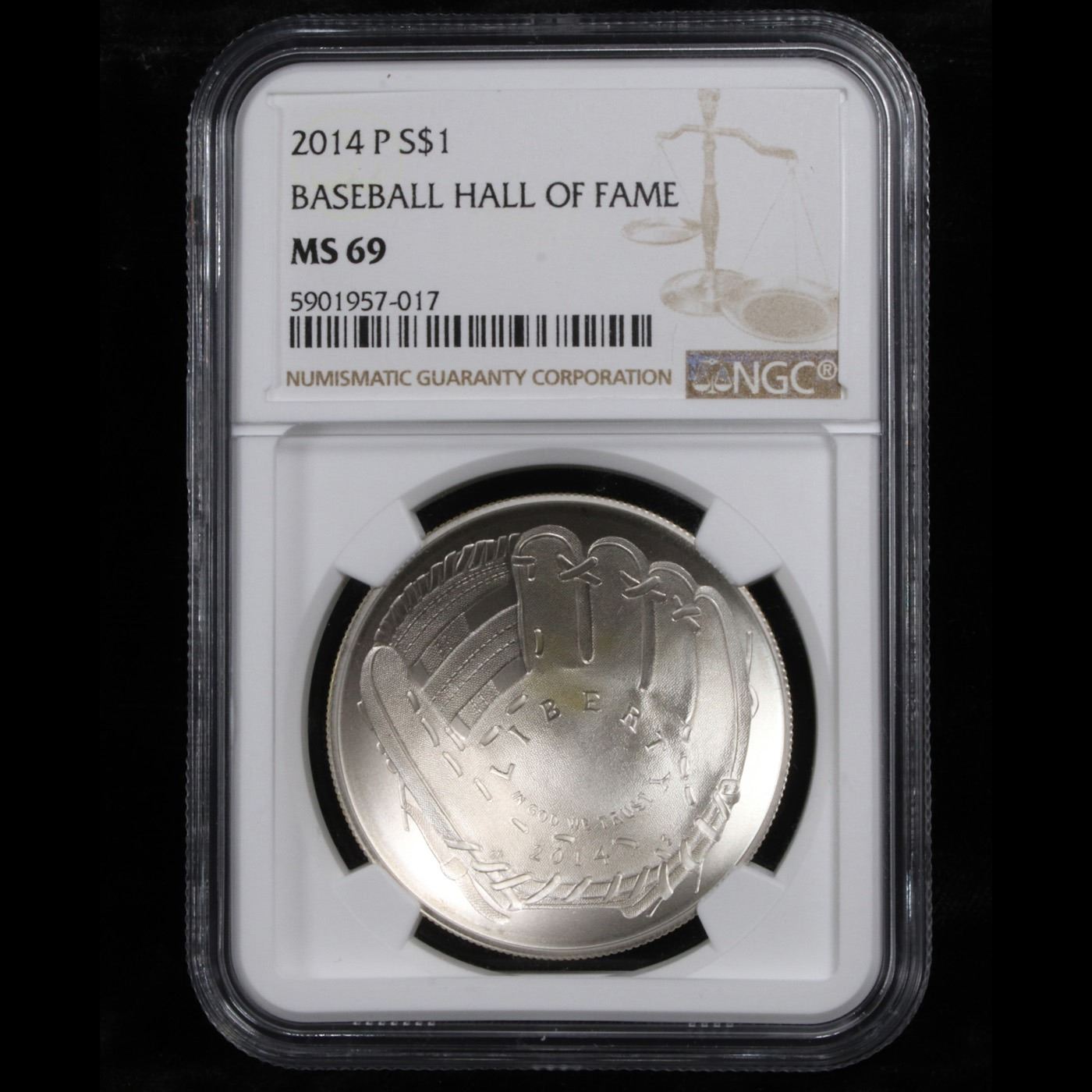 NGC 2014-p Baseball Hall of Fame Modern Commem Dollar $1 Graded ms69 By NGC.