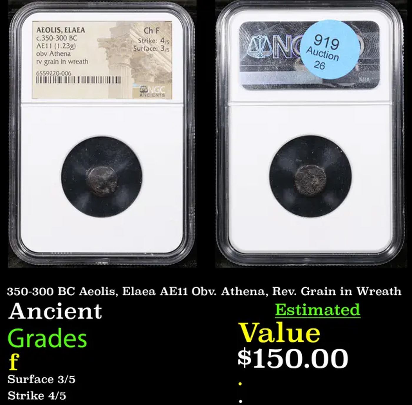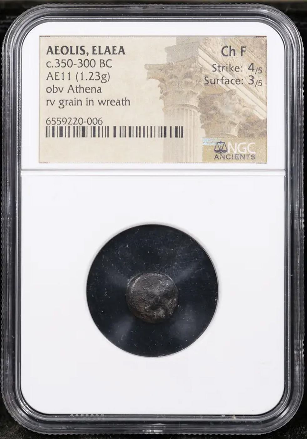 NGC 350-300 BC Aeolis, Elaea AE11 Obv. Athena, Rev. Grain in Wreath Ancient Graded f By NGC. The Cost Of Slabbing Alone is $50