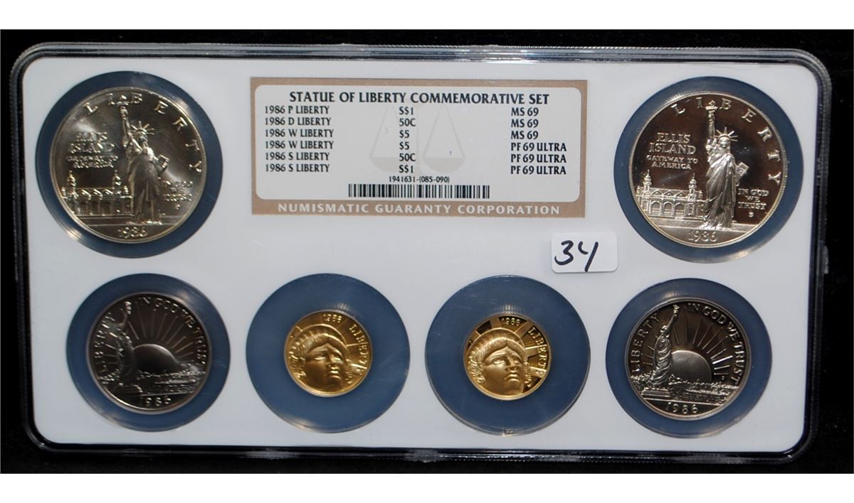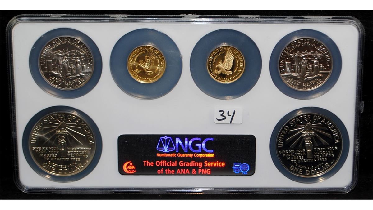 NGC 6-PIECE STATUE OF LIBERTY COMMEMORATIVE SET - 1986-W $5 GOLD - PF69 ULTRA, 1986-W $5 GOLD - MS69, 1986-P SILVER LIBERTY $1 - MS69, 1986-D SILVER 50 CENT - MS69, 1986-S 50 CENT LIBERTY - PR69 ULTRA, 1986-S $1 SILVER